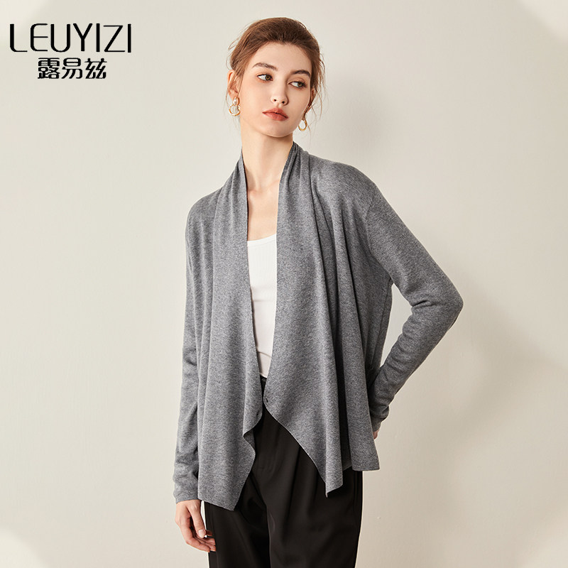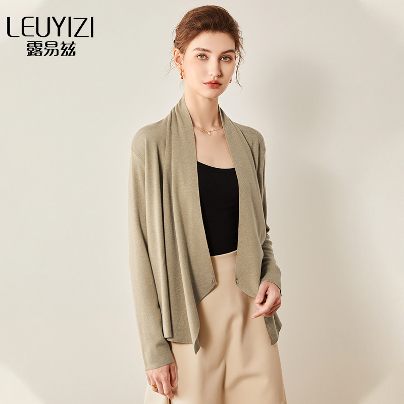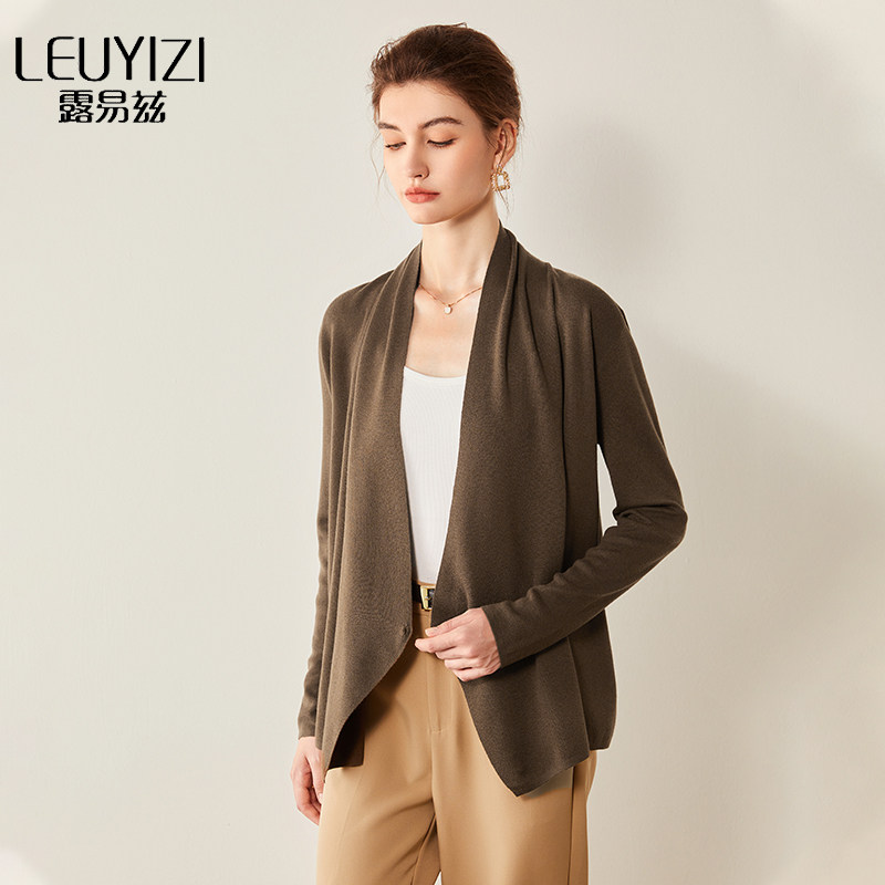 黑色针织开衫外套女2024秋季新款v领长袖气质羊毛披肩外搭开衫女