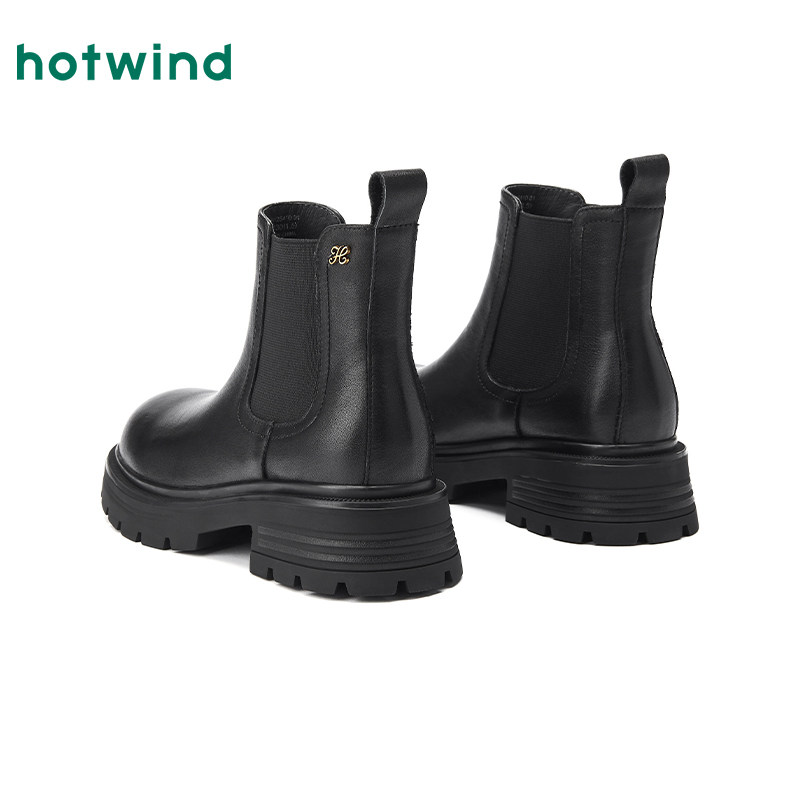 热风厚底时装靴女款2025年冬季新款英伦风粗跟短靴黑色切尔西靴