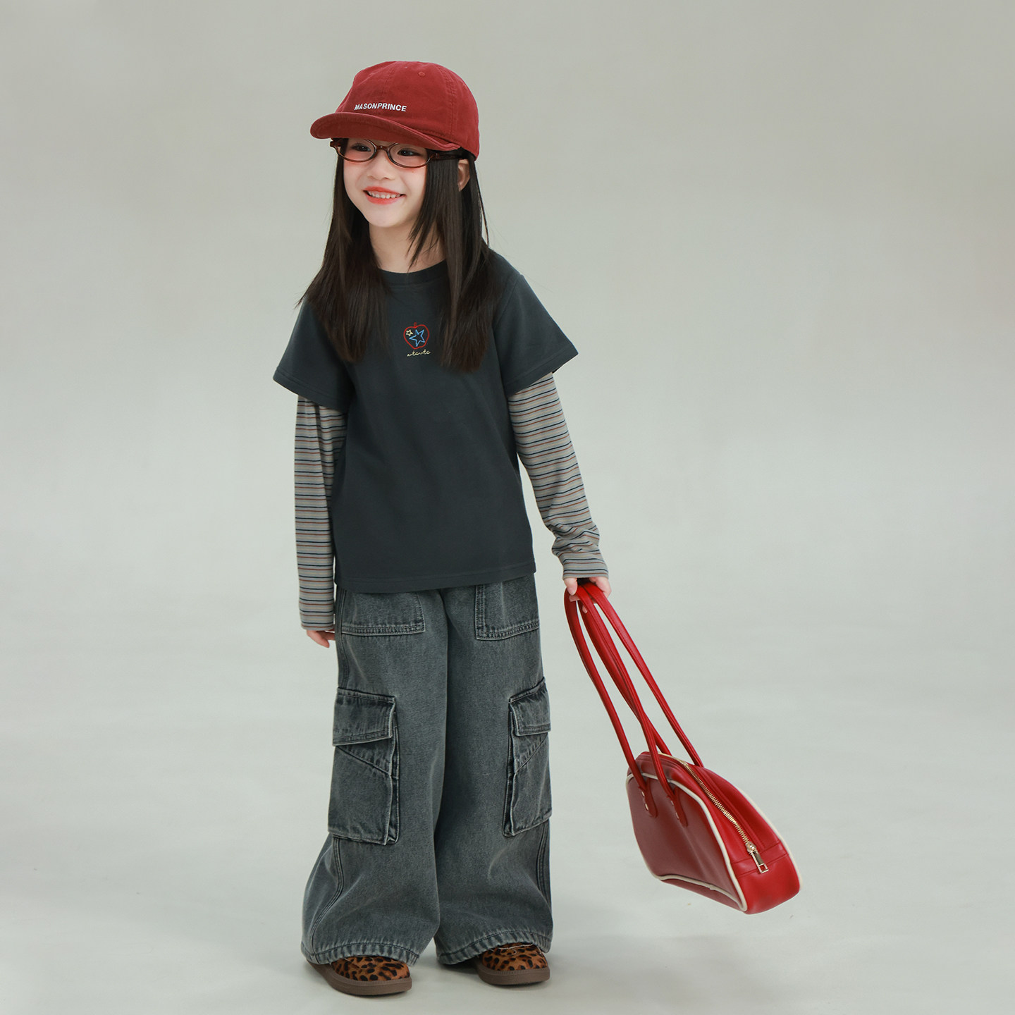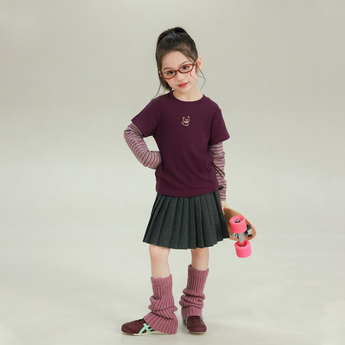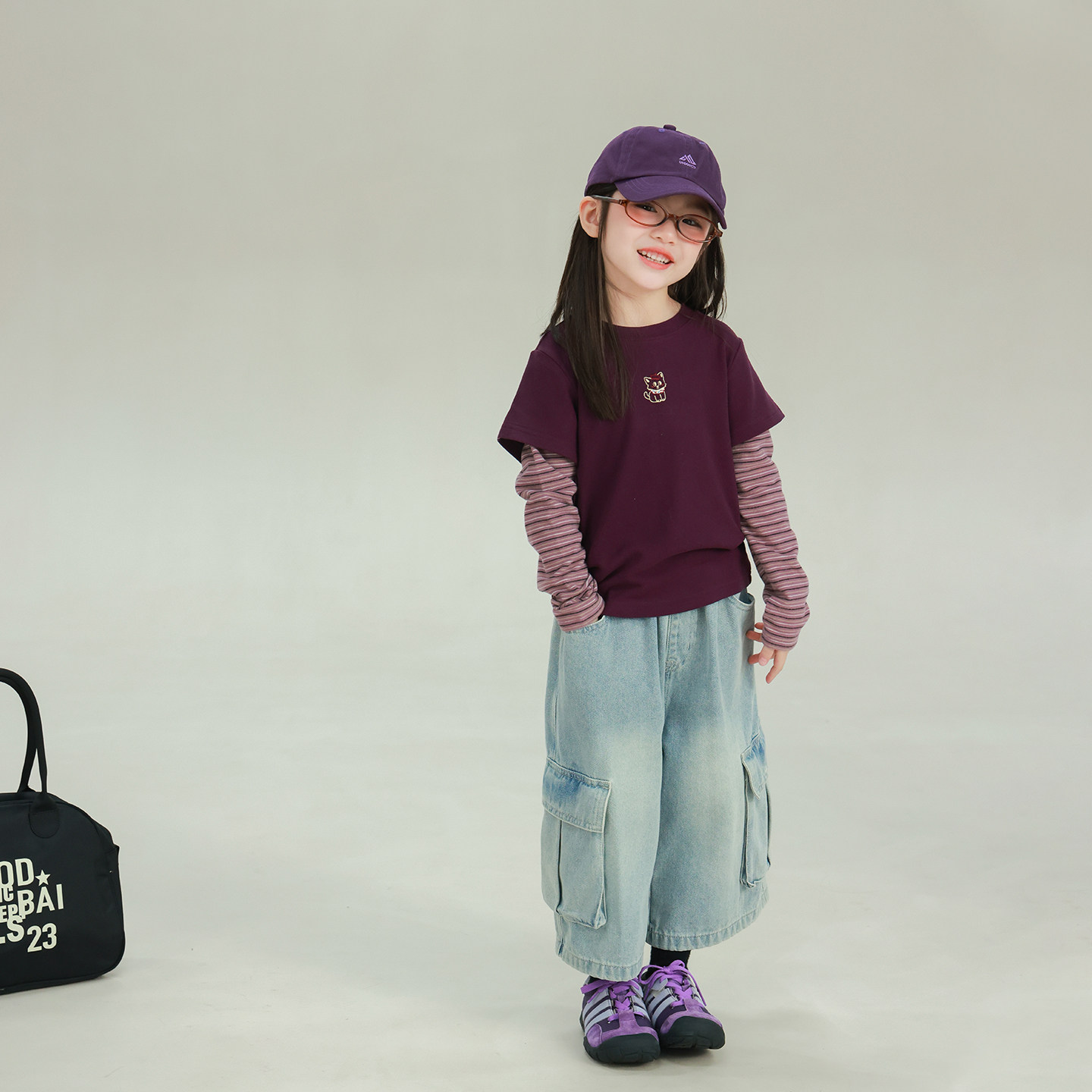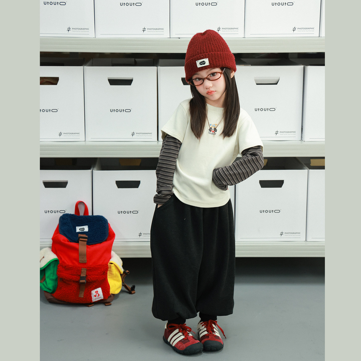 utouto大耳象女童假两件条纹拼接T恤2025冬季新宝儿休闲长袖上衣