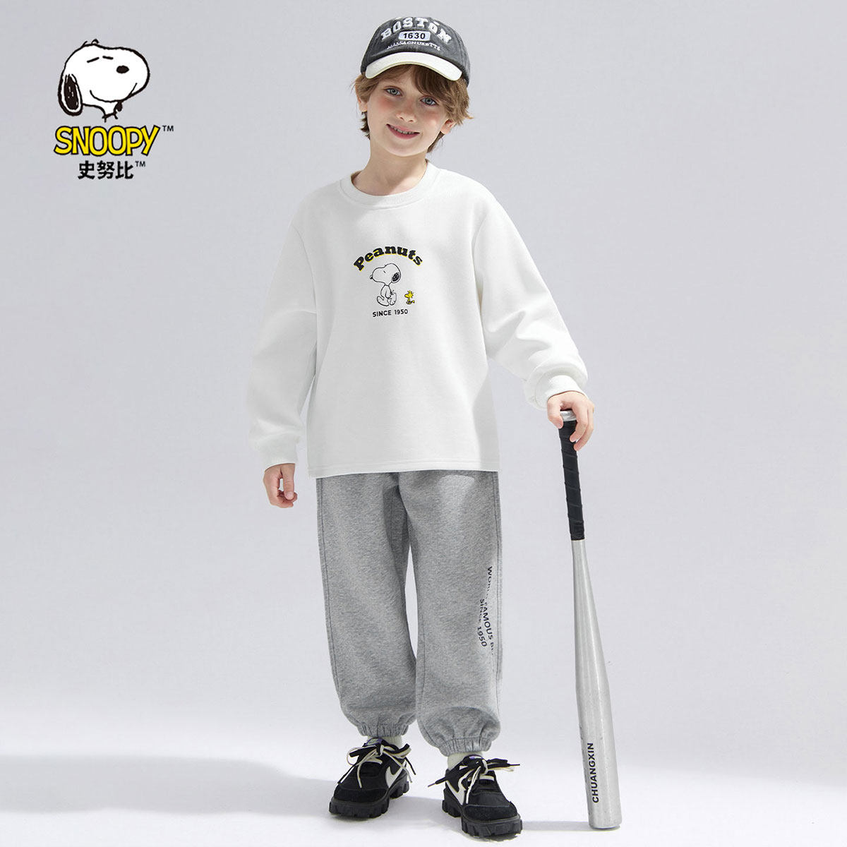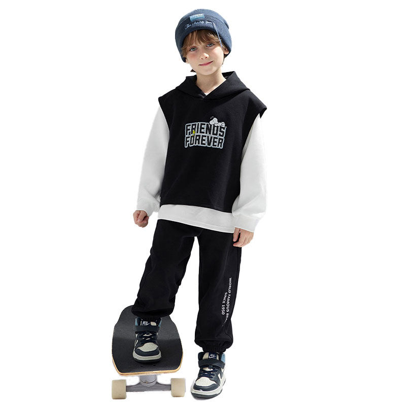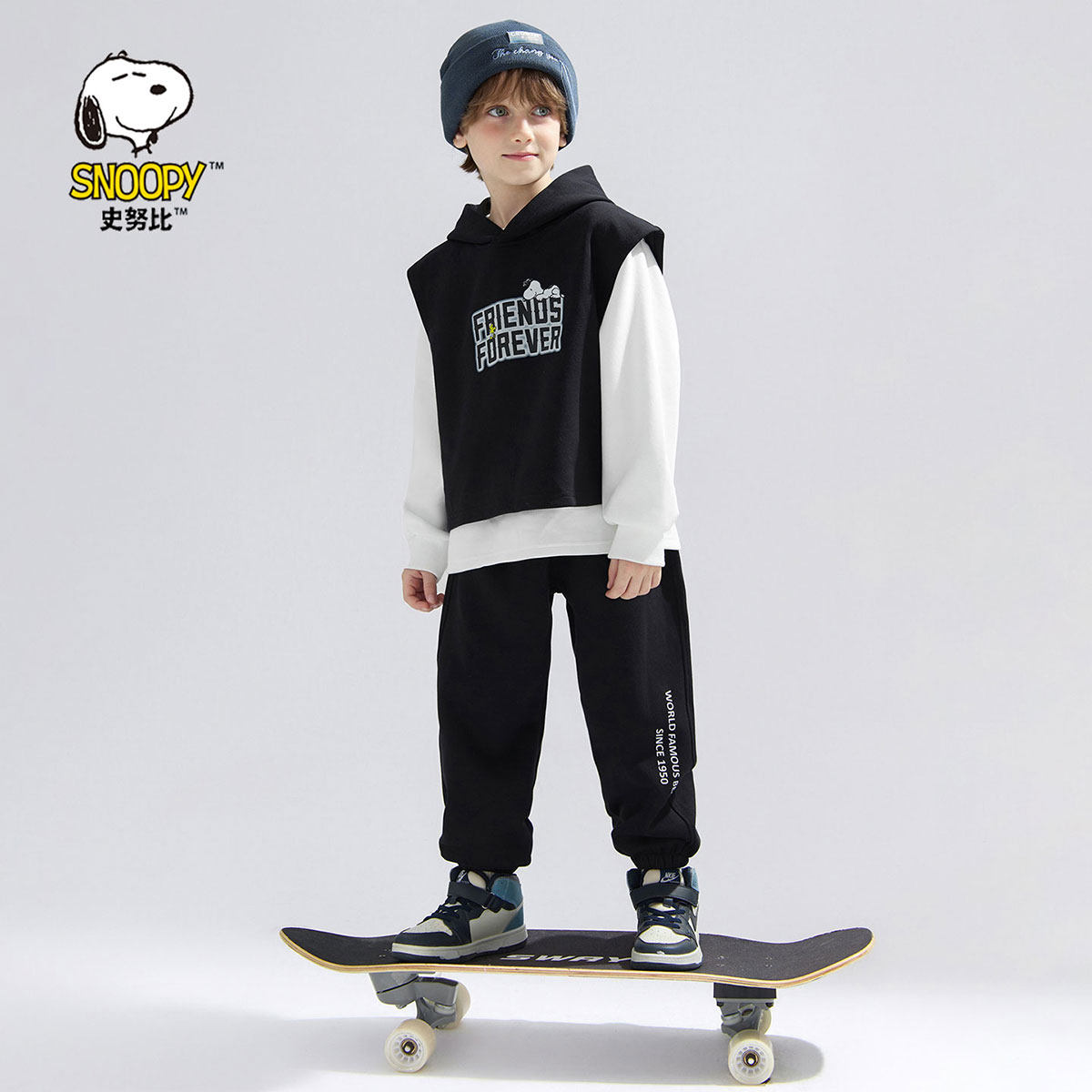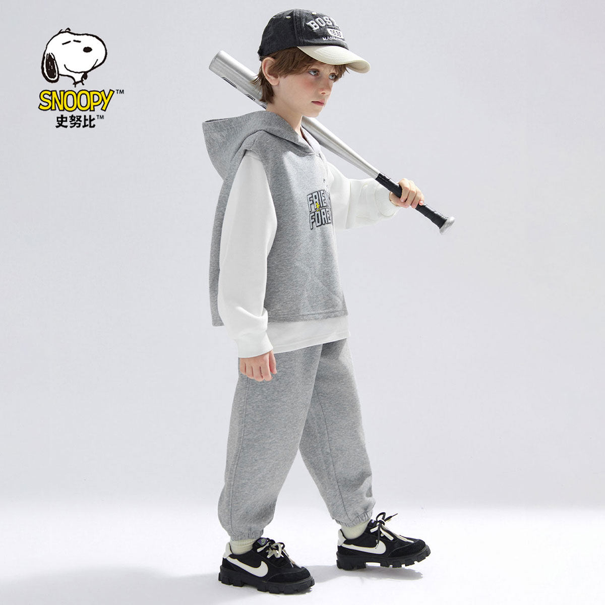 史努比童装男童套装2025新款春秋洋气运动儿童连帽卫衣卫裤三件套