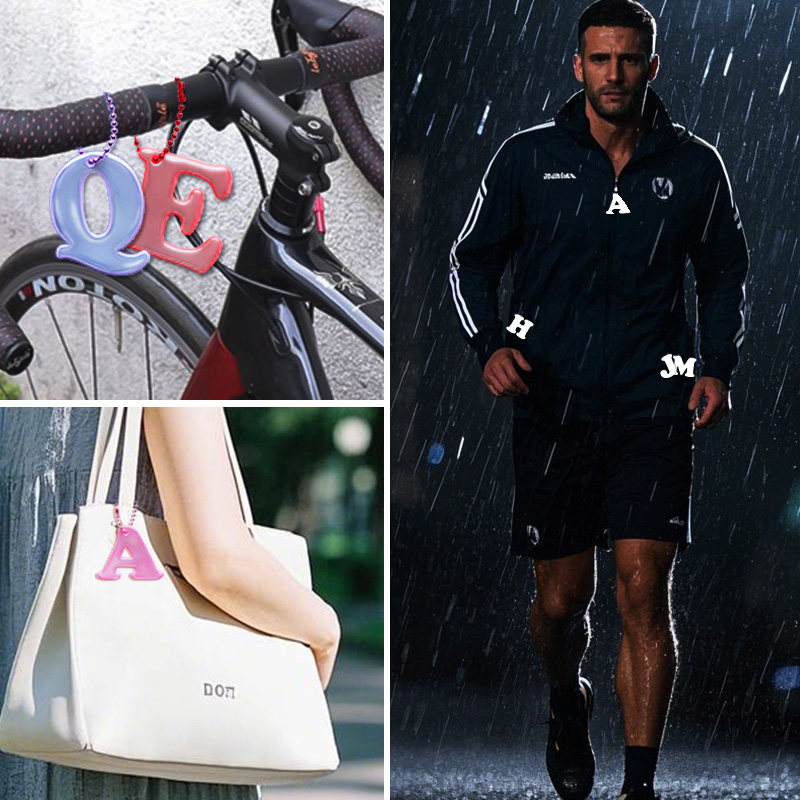 字母造型夜间安全反光书包挂件男女高亮反光警示牌夜骑夜跑旅行箱