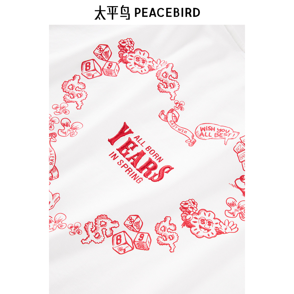 太平鸟男装T恤春季宽松刺绣长袖打底 B2CPF1122
