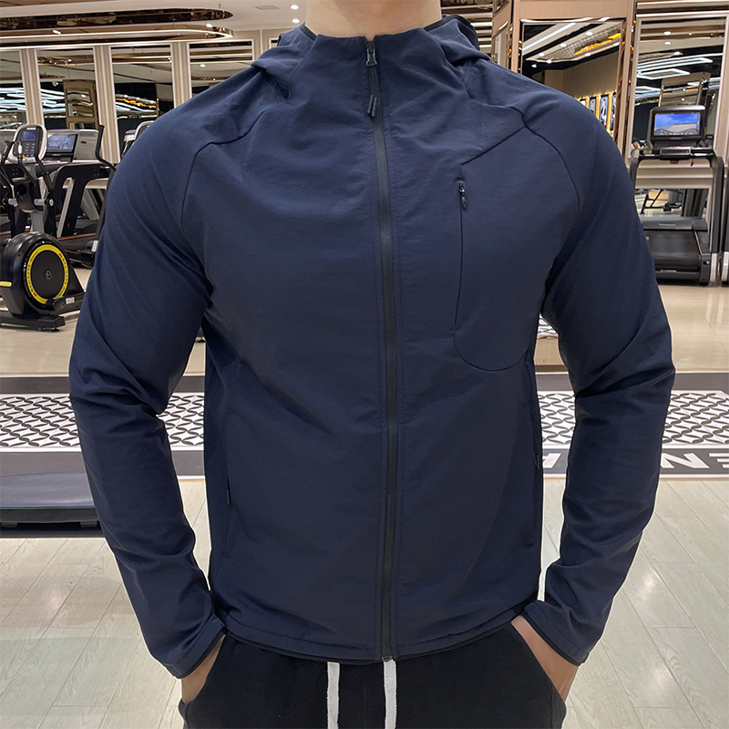 运动连帽外套男士跑步健身训练夹克修身休闲长袖防风户外晨跑服