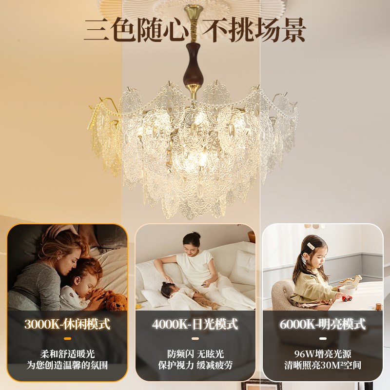 法式中古风吊灯客厅灯美式s轻奢2025年新款玻璃水晶灯餐厅卧室灯