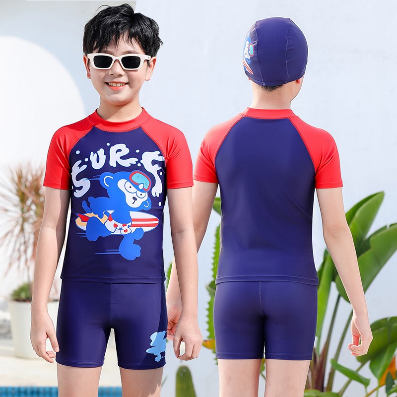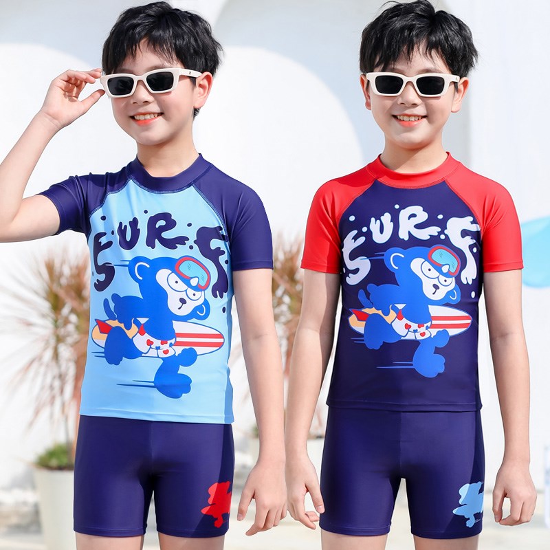 儿童泳衣分体男童中大童2024新款夏季防晒小男孩短袖平角泳裤套装