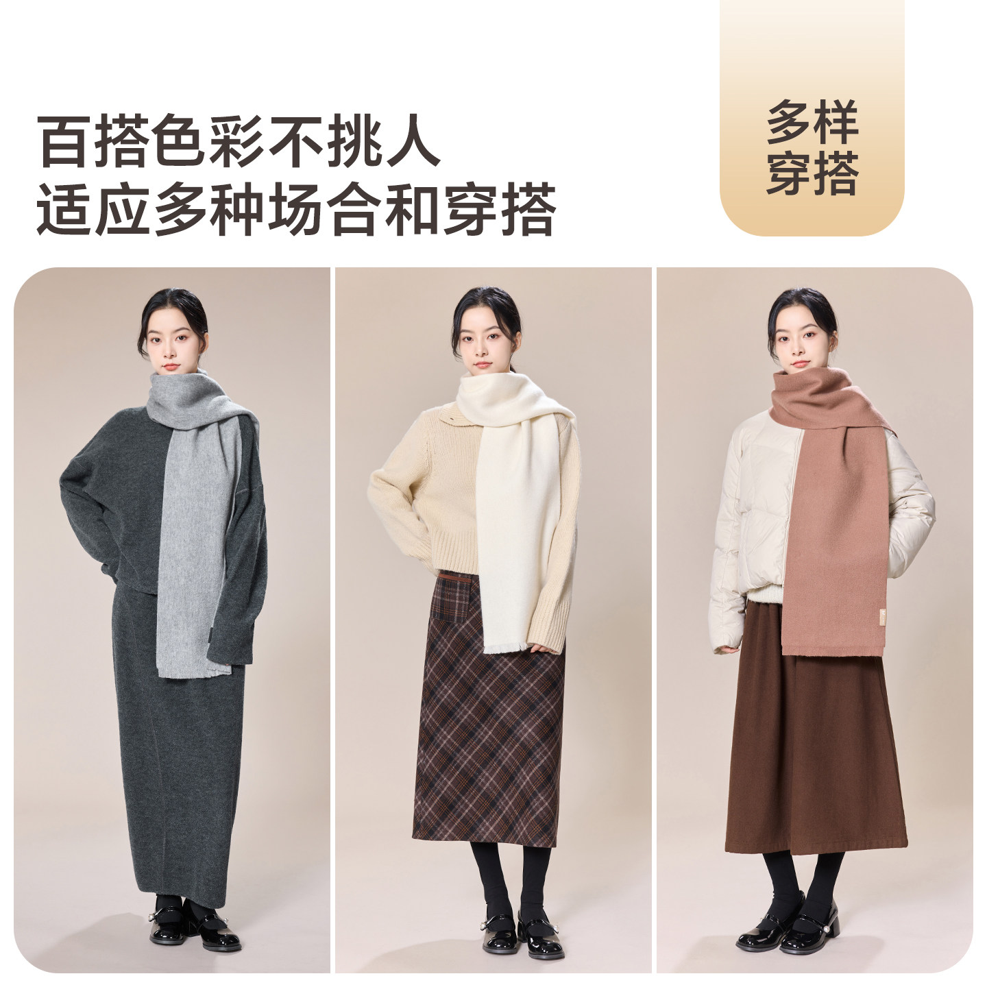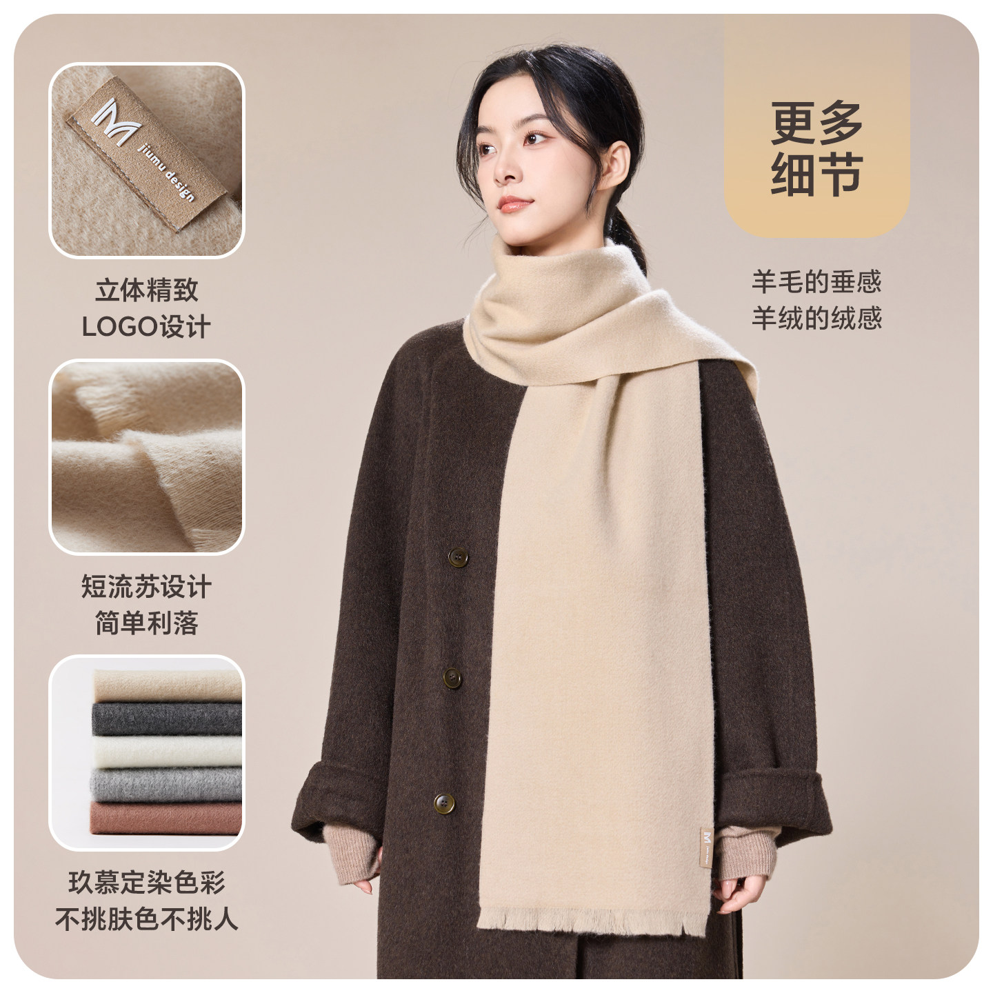玖慕红色羊绒围巾女秋冬保暖礼物