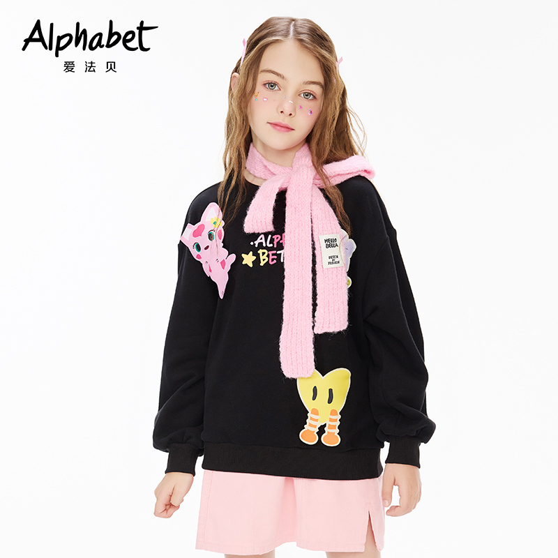 爱法贝2025秋新款女童卫衣儿童套头衫中大童学生甜美洋气圆领上衣