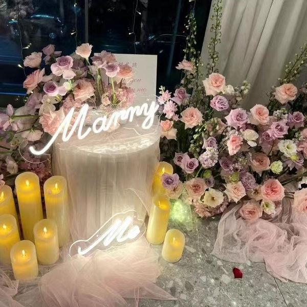七夕求婚灯牌仪式感布置marryme霓虹灯定制发光logo派对装饰氛围