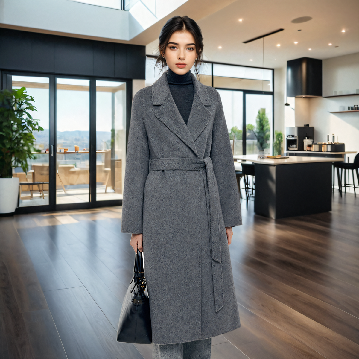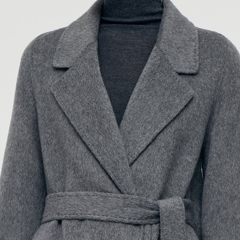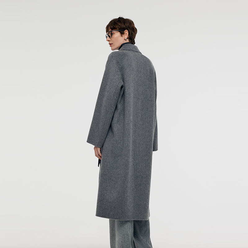 歌莉娅灰色羊毛大衣女秋冬新款高级感英伦风插肩袖双面呢外套