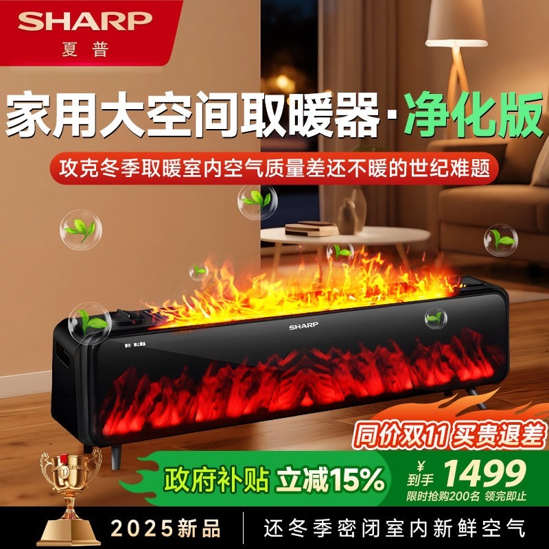 日本夏普石墨烯取暖器踢脚线仿真加湿大面积速热火焰家用节能净化
