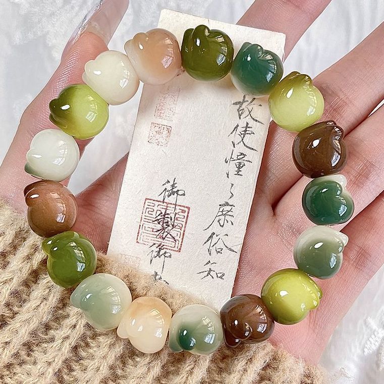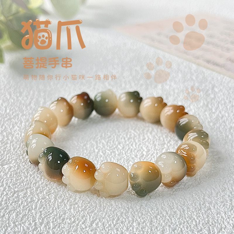 小青柠猫爪菩提手串真品雕刻新品白玉菩提根文玩学生盘玩手链男女