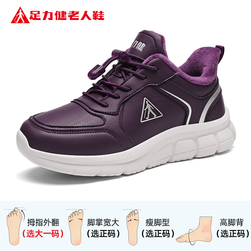 足力健老人鞋官方旗舰店正品中老年妈妈冬季加绒保暖棉鞋健步女鞋