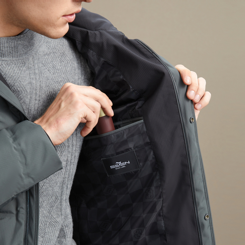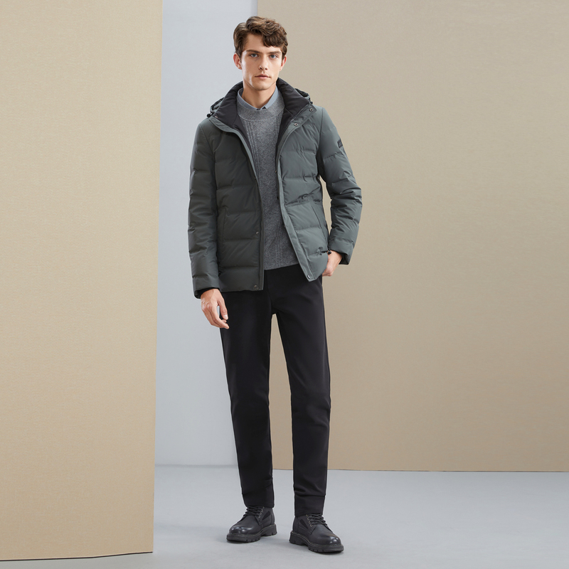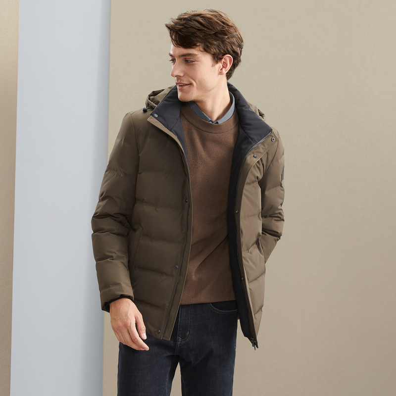【白鸭绒】柒牌男装可拆卸连帽羽绒服冬季新款时尚条纹保暖厚外套