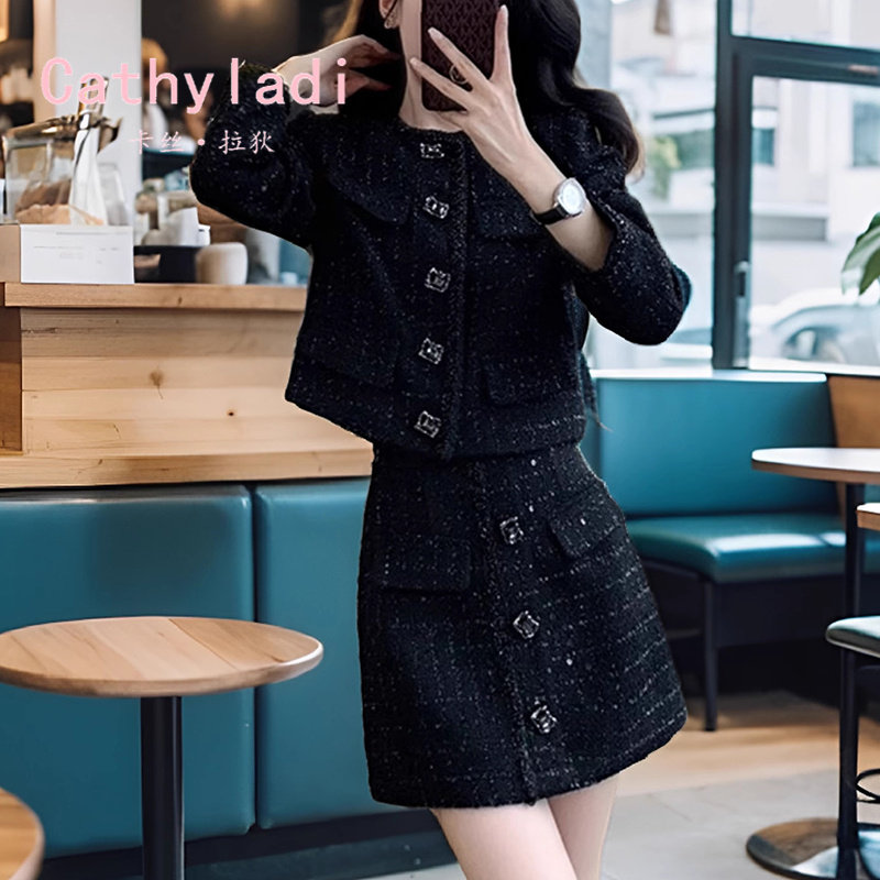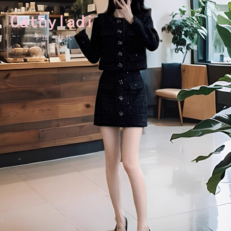 CATHYLADI法式名媛小香风套装2025秋季时尚上衣外套半身裙两件套