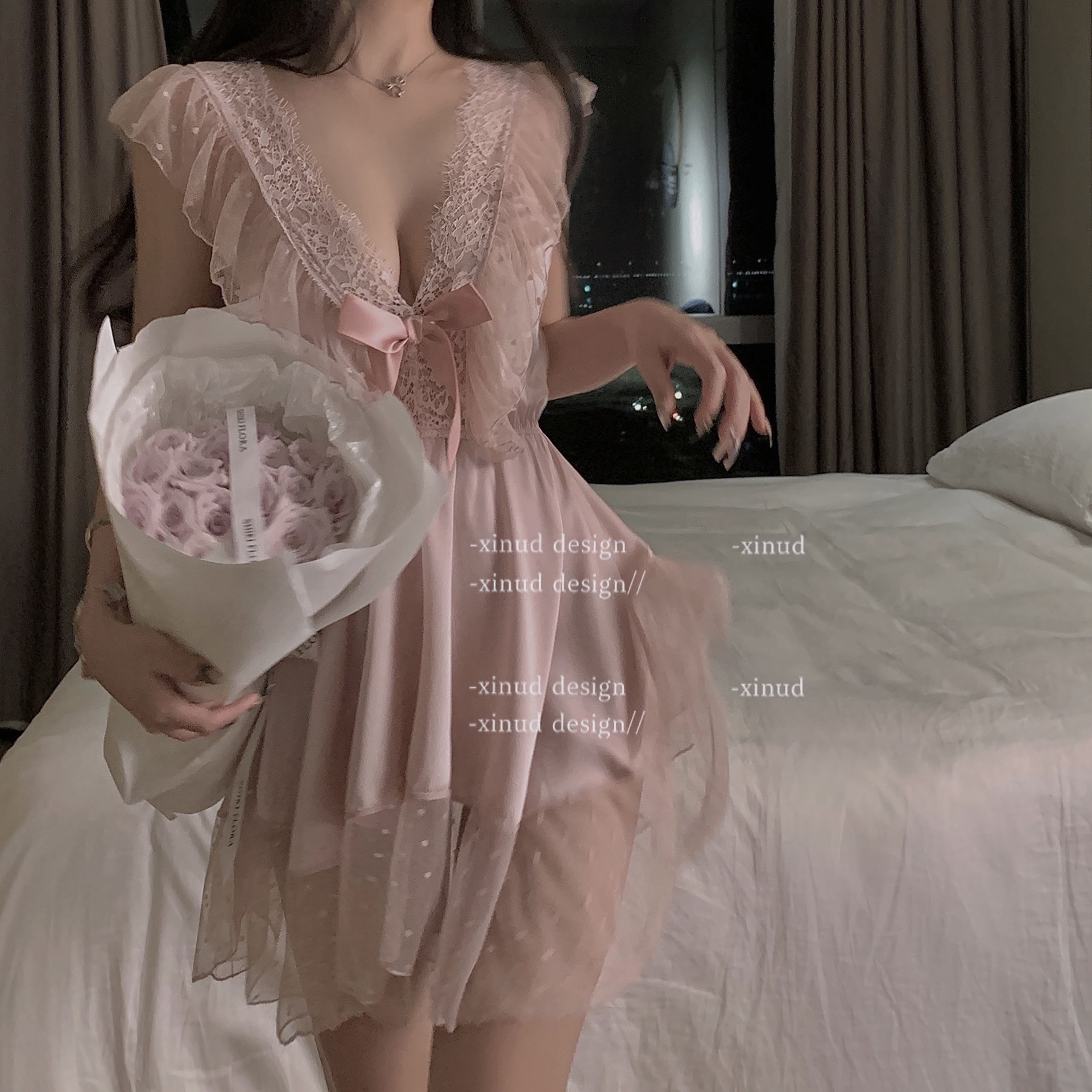 蕾丝睡裙蕾丝蝴蝶结露背性感