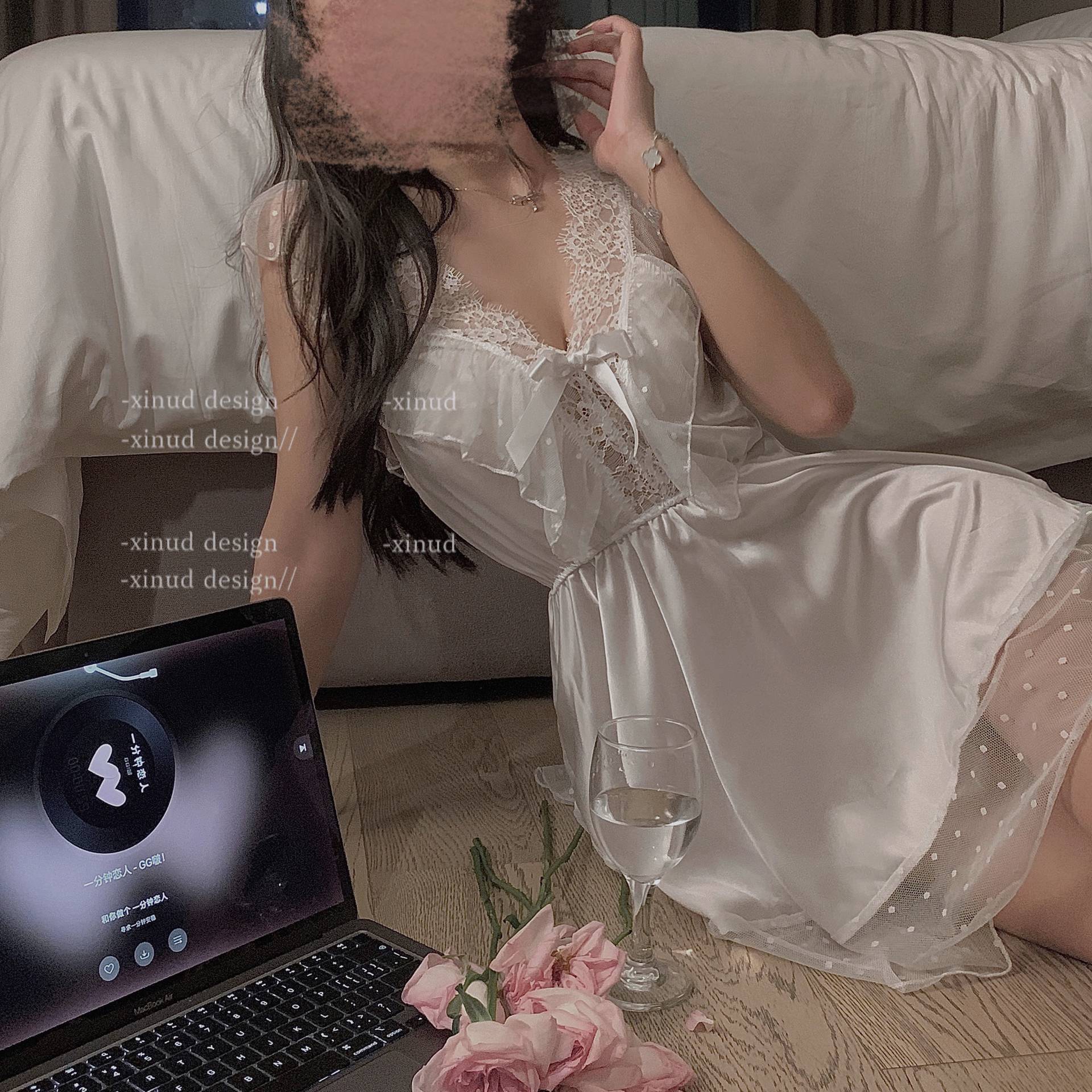 「LA」温柔杀手*纯欲丝滑吊带睡衣性感镂空露背蕾丝蝴蝶结女睡裙