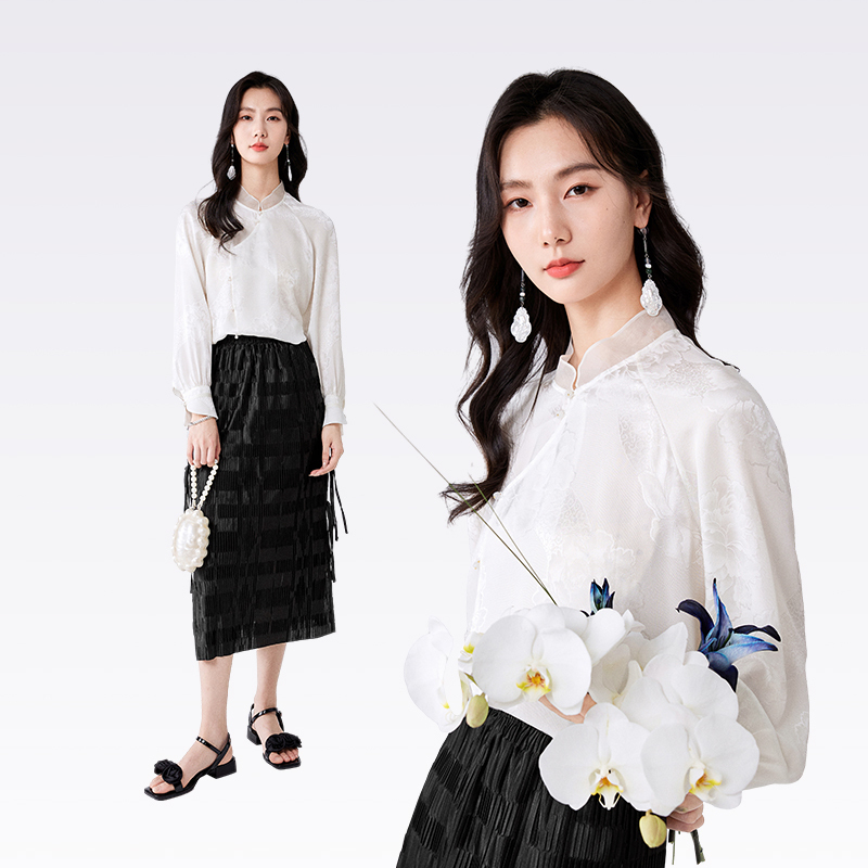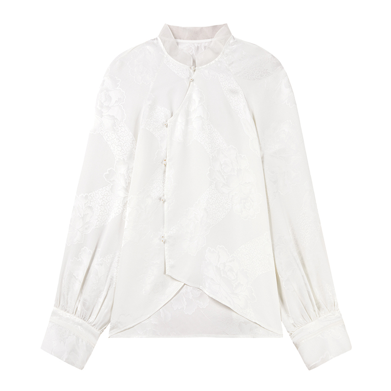 秋水伊人奥莱100%桑蚕丝新中式衬衫夏女国风真丝提花上衣