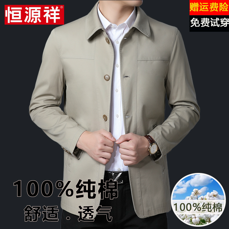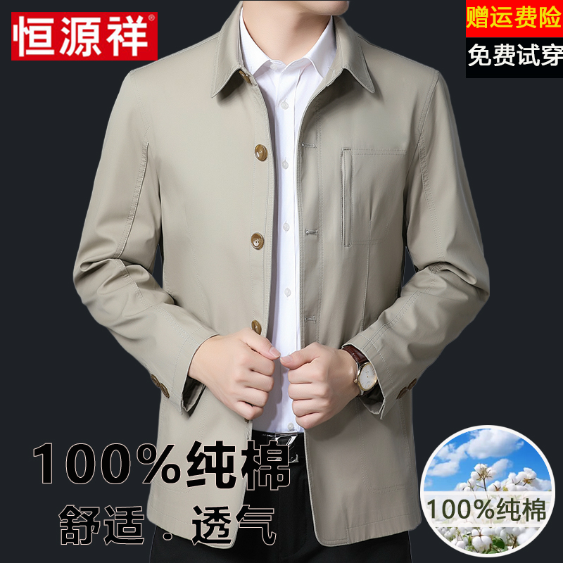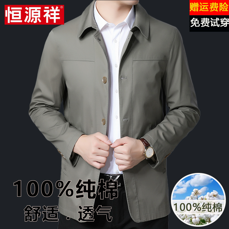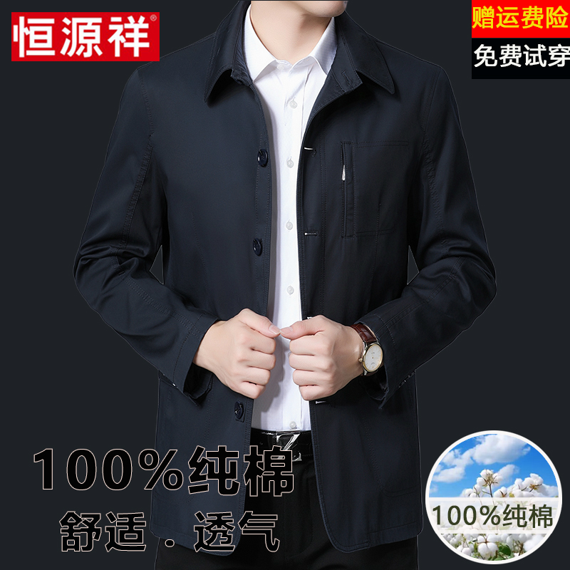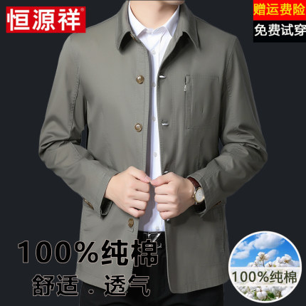 恒源祥春秋季中年男士夹克纯棉公务外套男翻领商务休闲爸爸装薄款