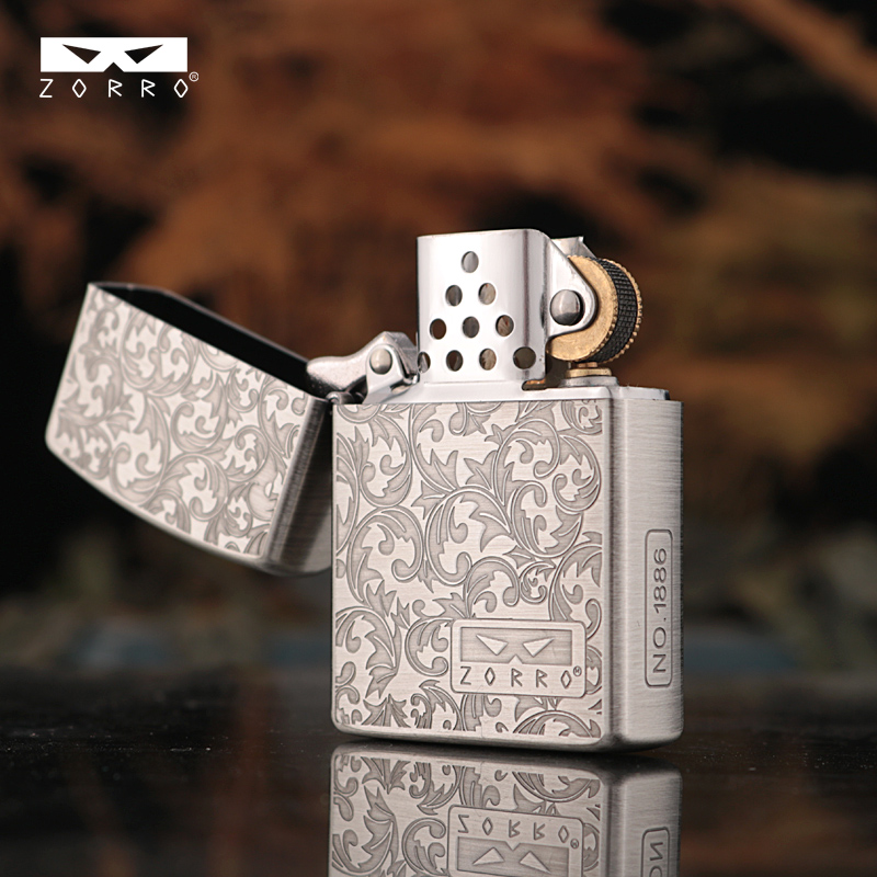 新款佐罗二代限量版古银唐草煤油打火机纯铜砂轮防风个性创意精雕