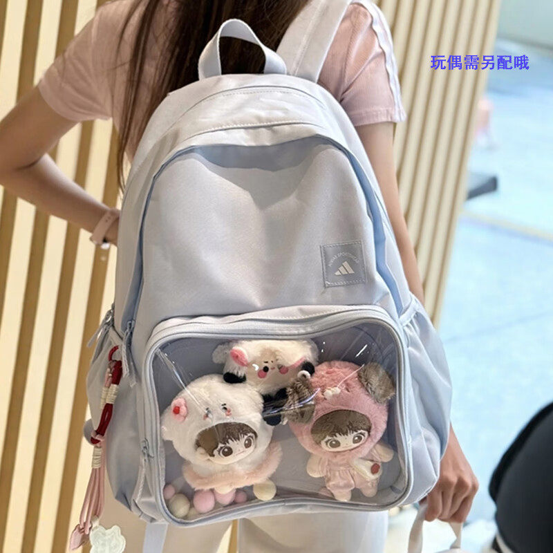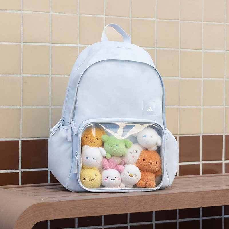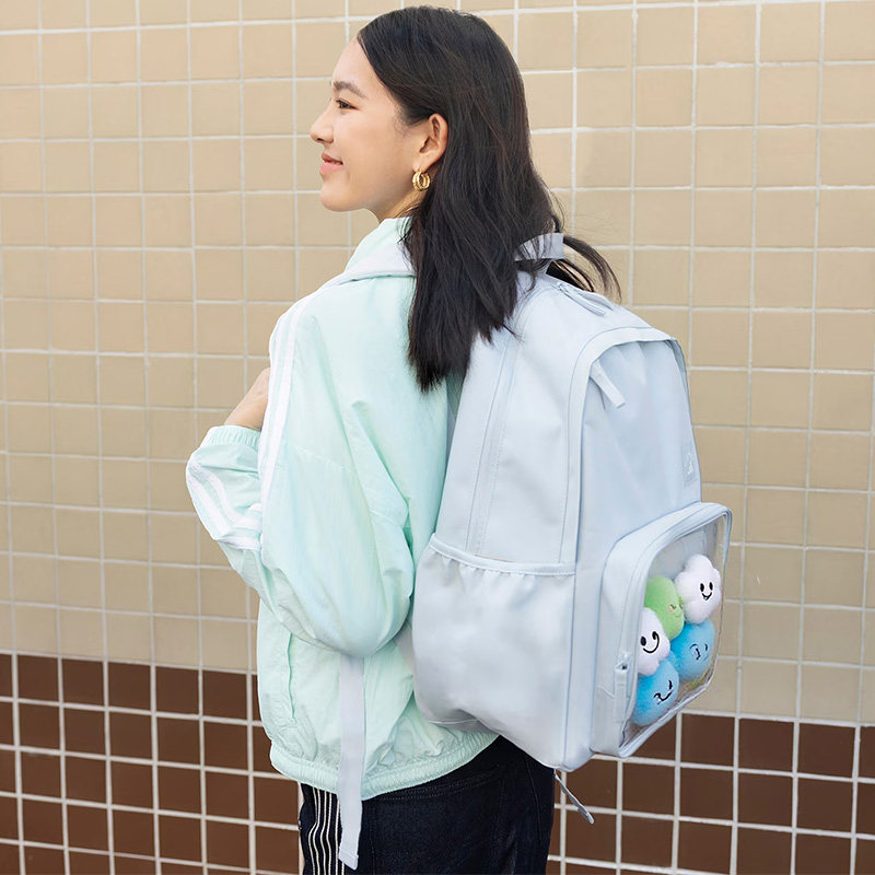 阿迪达斯双肩包男包女包大容量娃娃包运动透明前袋学生书包KC0254