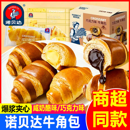 诺贝达爆浆夹心牛角包咸奶酪巧克力味早餐面包糕点心休闲小吃零食