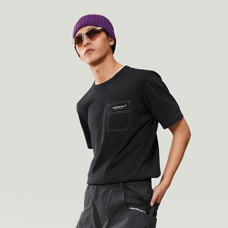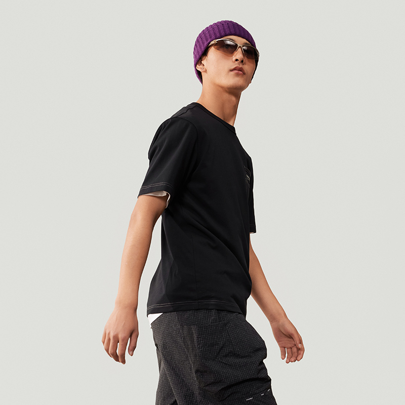 李宁CF溯 男子凉感速干排汗弹力常规休闲运动短袖T恤ATSU607-B品
