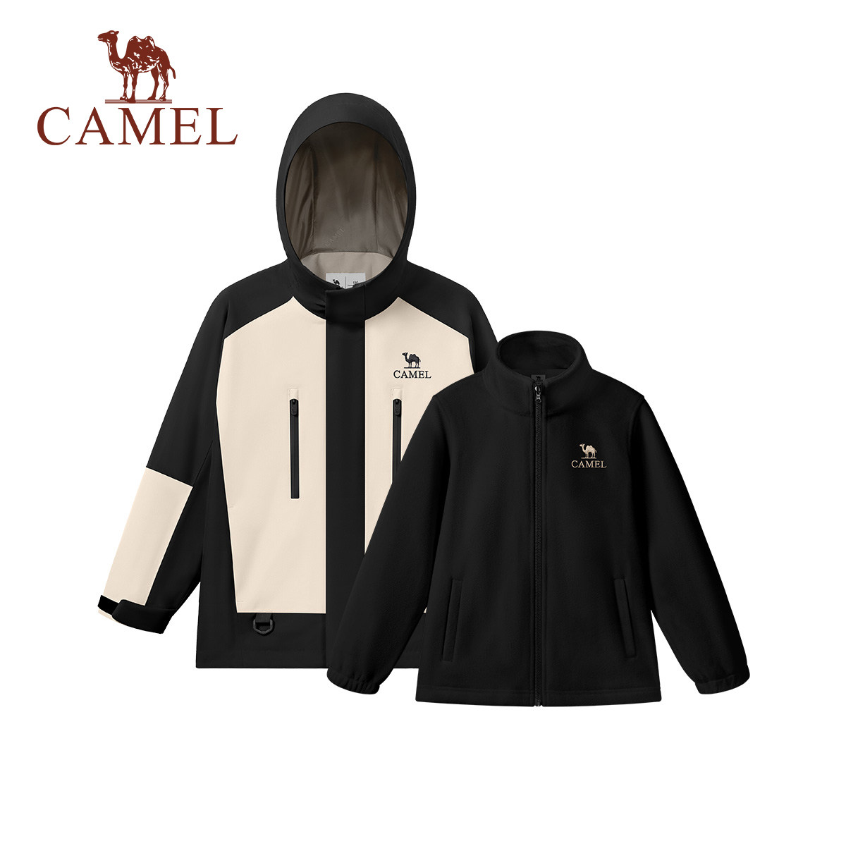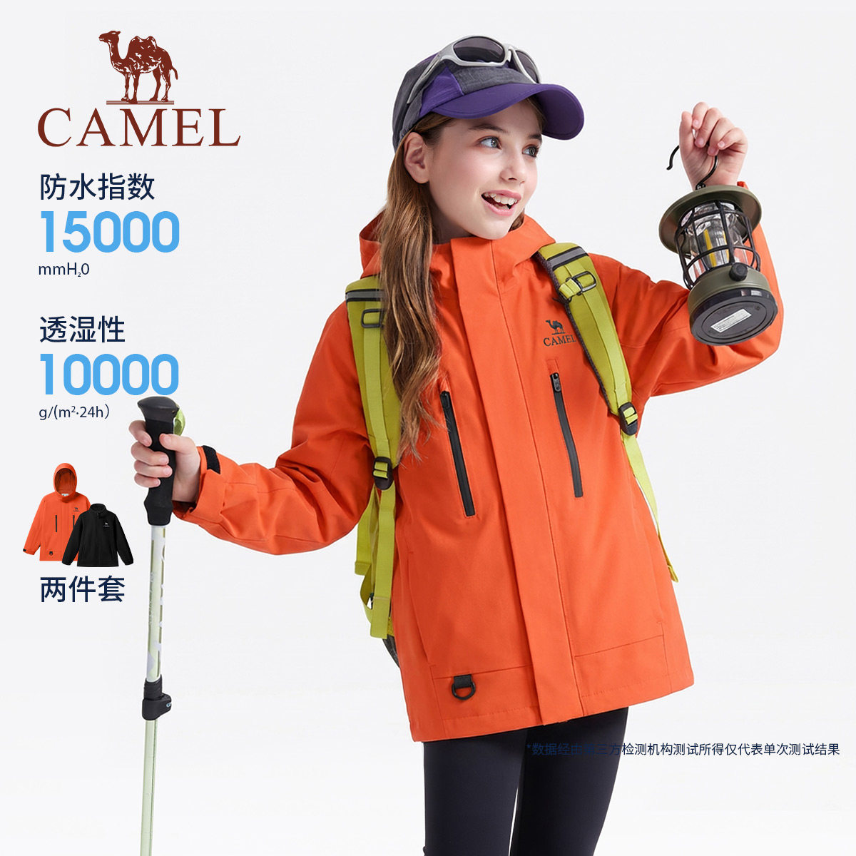 骆驼儿童冲锋衣三合一防风防水户外运动服2025新款男女童连帽外套