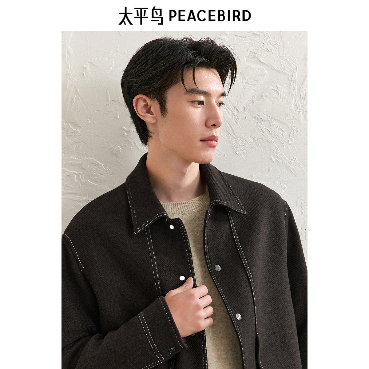 太平鸟男装明线行政夹克冬季新款仿麂皮拼接茄克翻领休闲外套Y
