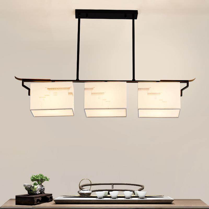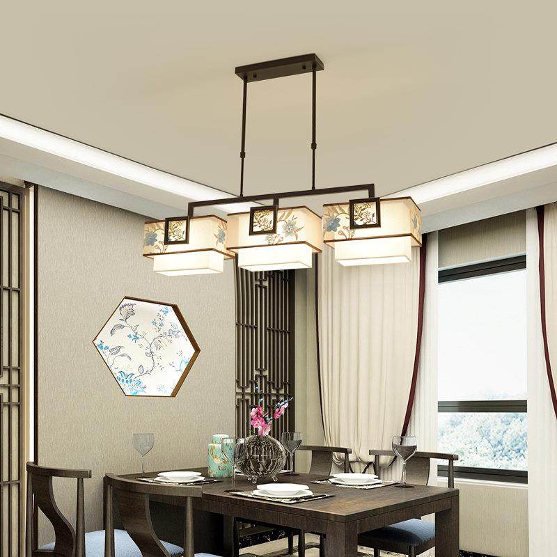 新中式餐厅吊灯三头简约饭厅长餐桌灯具风复古茶室吧台吊灯