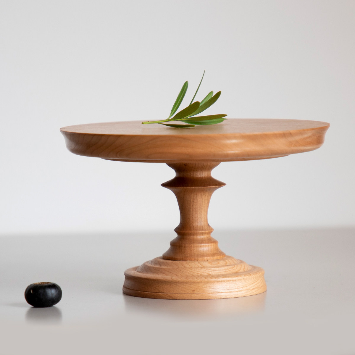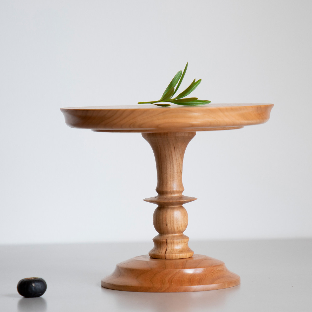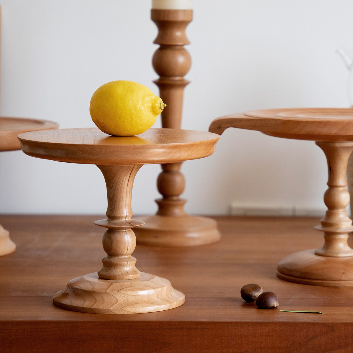 三宅家食器 北美FAS级樱桃木整块木料实木高脚盘果盘 手作蛋糕盘