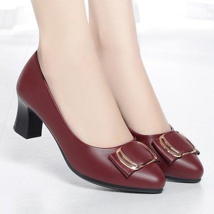 春秋时尚粗跟中跟皮鞋中年妈妈鞋高跟瓢鞋软底舒适工作大码单鞋