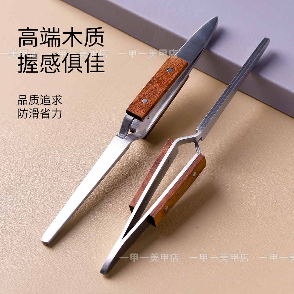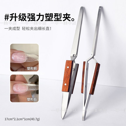 新款美甲木质柄塑形夹不锈钢镊子多功能建构光疗延长用定型钳工具