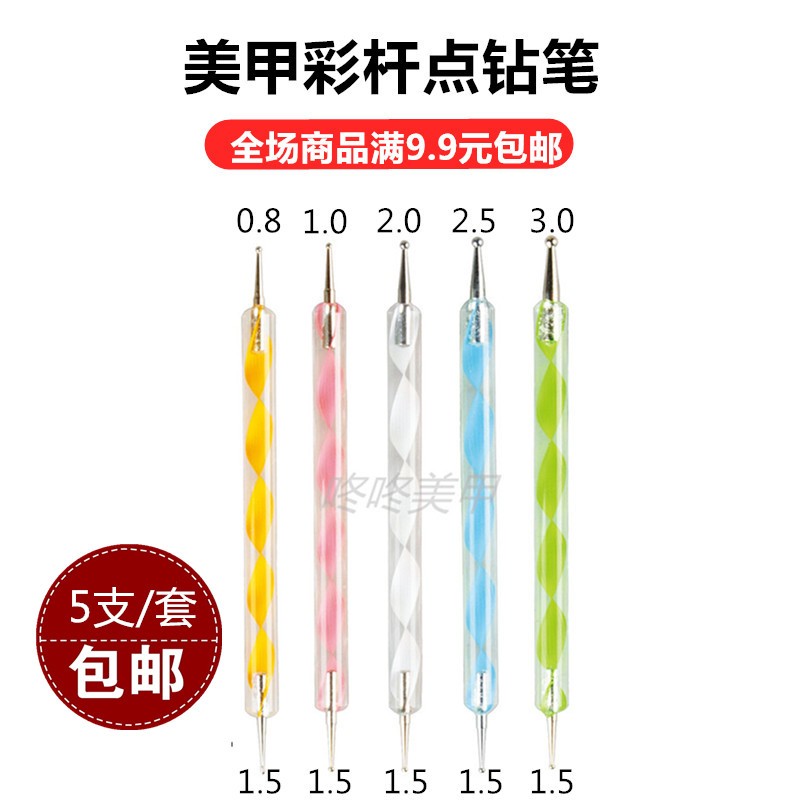 美甲彩杆点钻笔点花笔双头波点点珠勾画笔初学者专用镶钻工具包邮