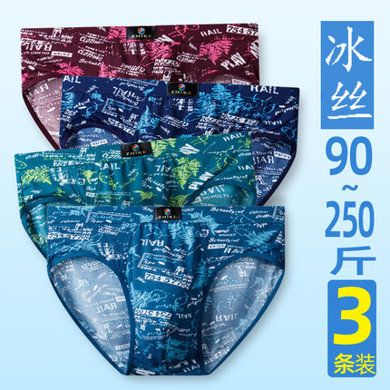 富世代夏季冰丝男士内裤男三角裤青年中腰裤衩大码性感潮速干肥佬