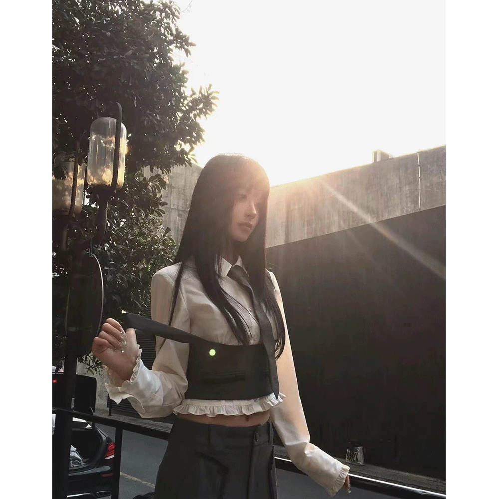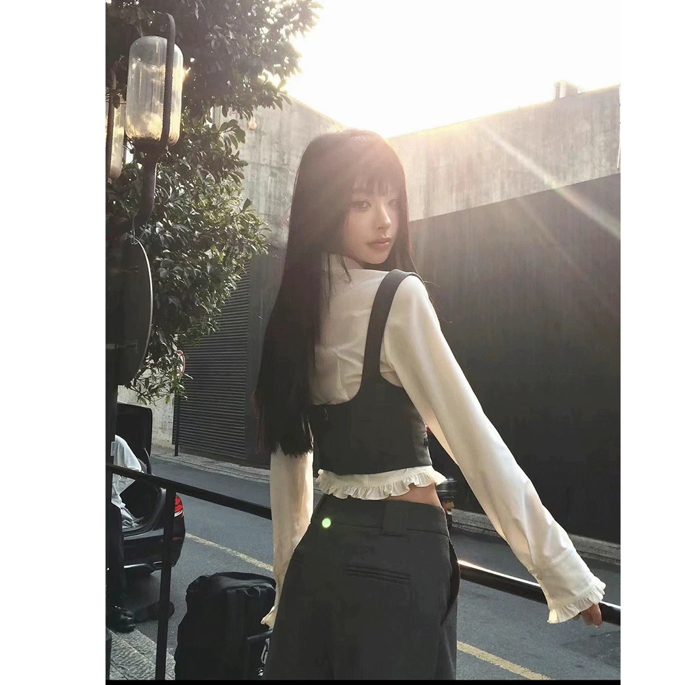 格雷系设计感穿搭2025春季新款衬衣上衣马甲女西装休闲裤子三件套