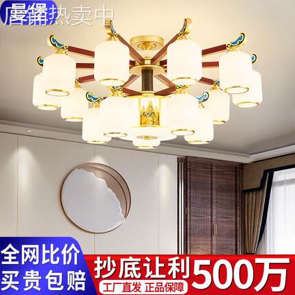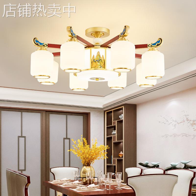 全铜新中式吊灯客厅灯2024年新款中国风禅意茶室书房大厅玉石灯具