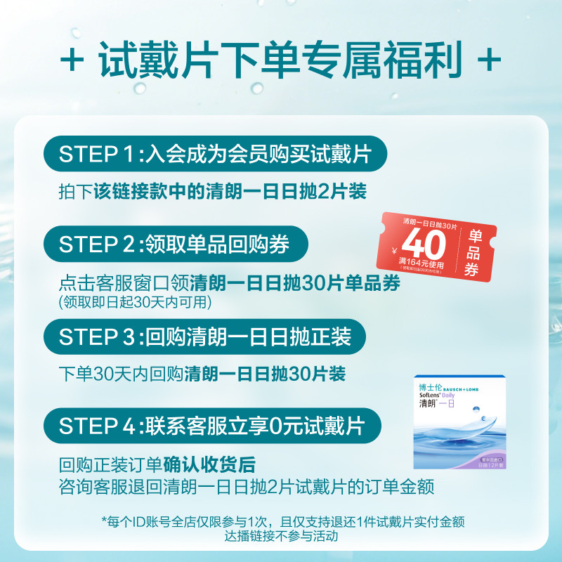 博士伦清朗一日透明高度近视隐形眼镜日抛2片官方试戴官方旗舰店