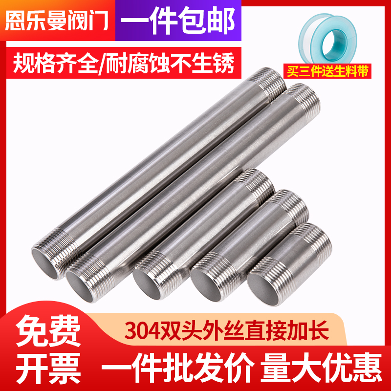 304不锈钢水管4分6分1寸加长双外丝管直接延长管直通对丝接头