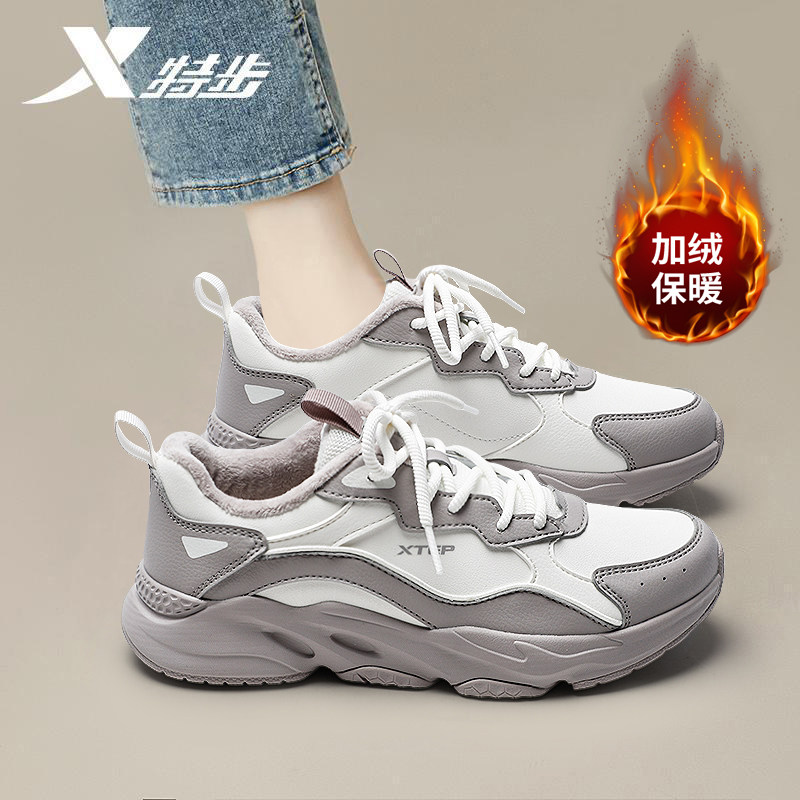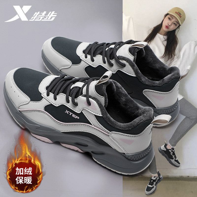 特步女鞋冬季加绒保暖运动鞋