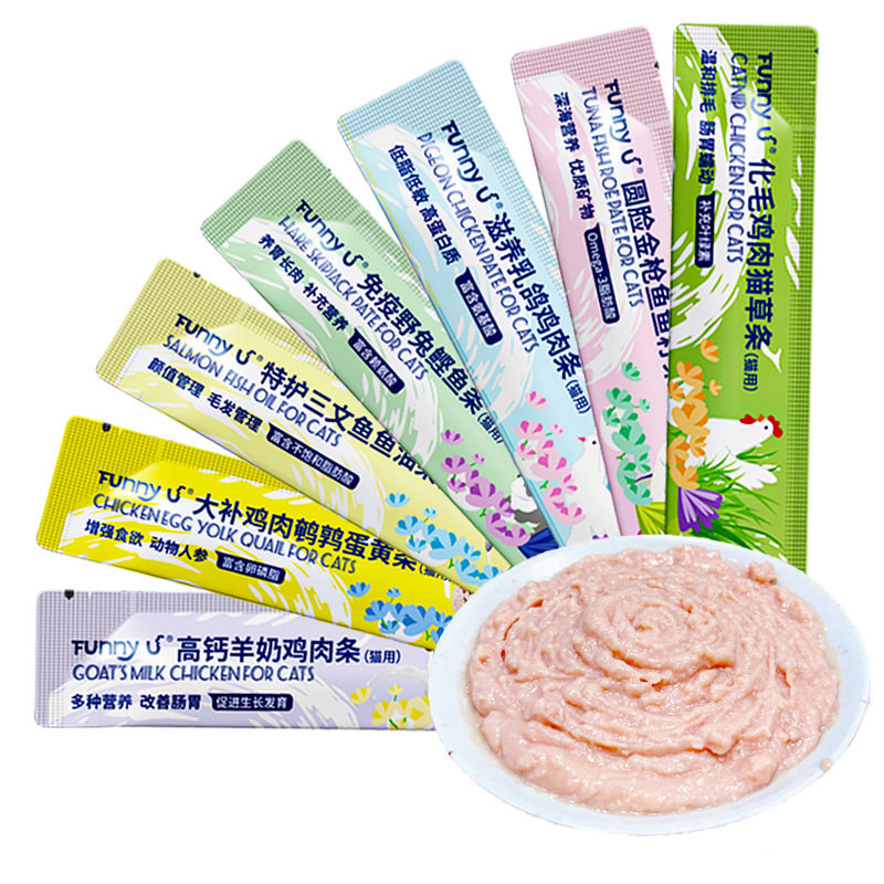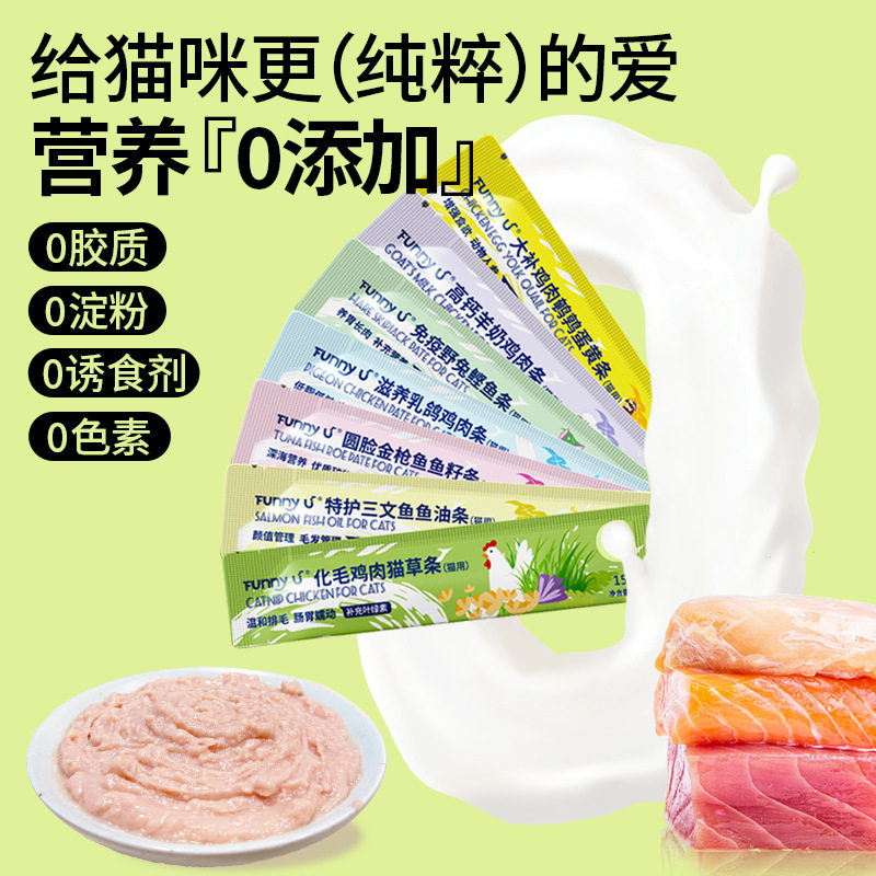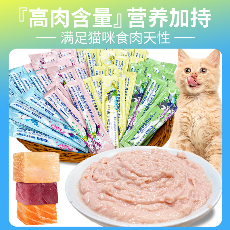 宠物零食鱼油三文鱼金枪鱼鸡肉猫草猫条猫咪营养发腮猫罐头湿粮包