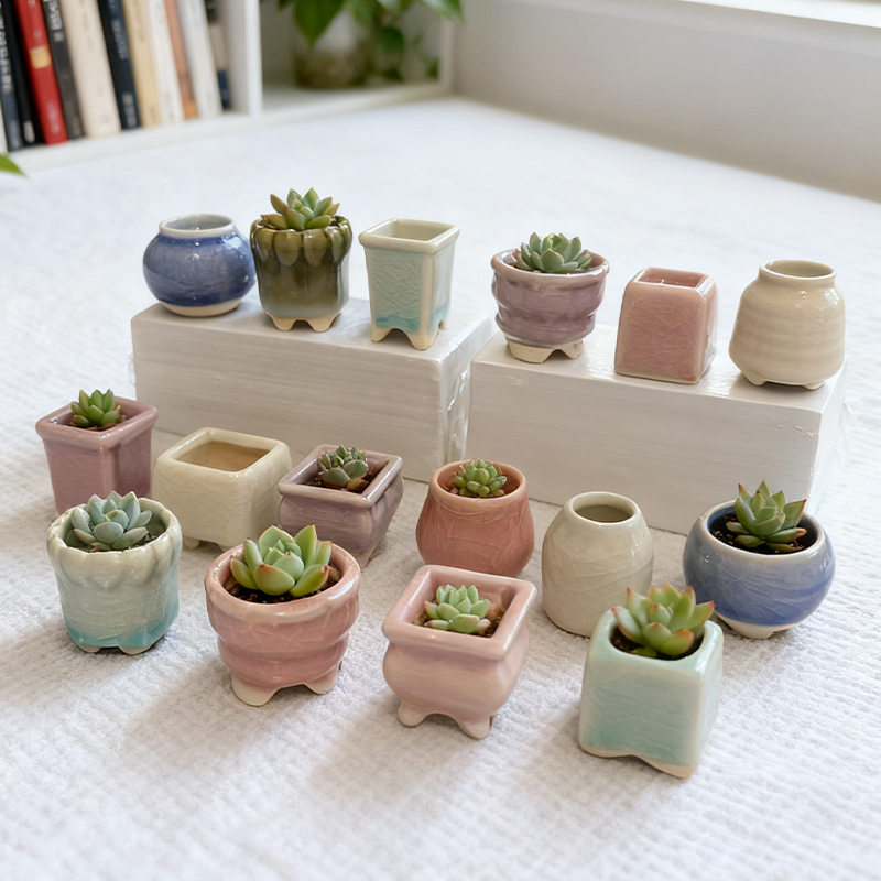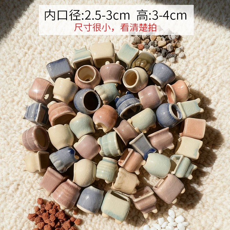 多肉花盆陶瓷迷你植物花器个性创意花盆冰裂多肉小号花盆栽拇指盆