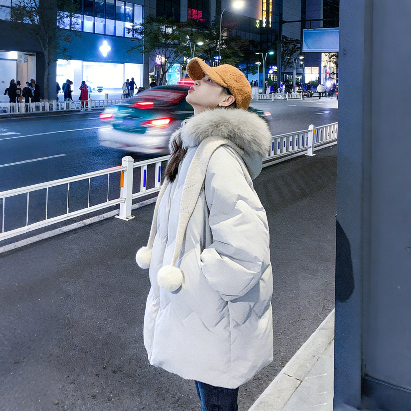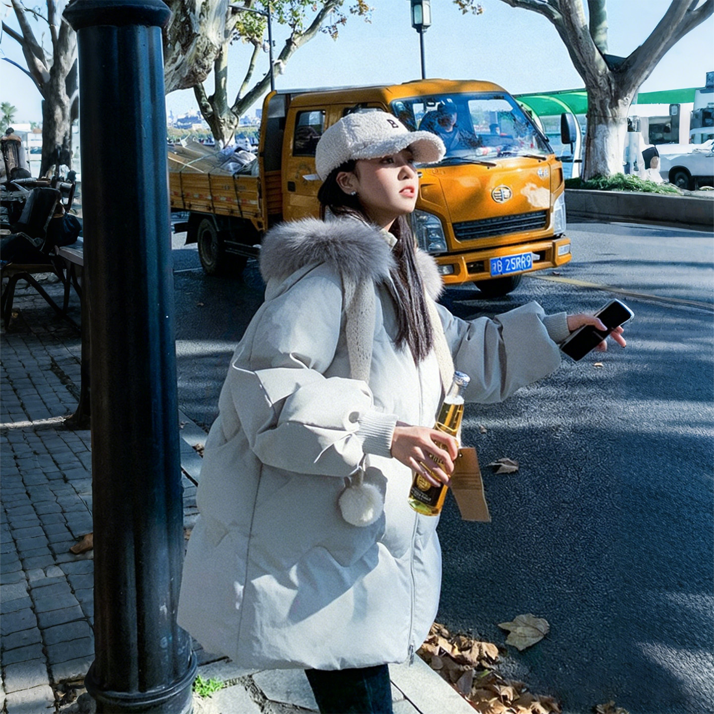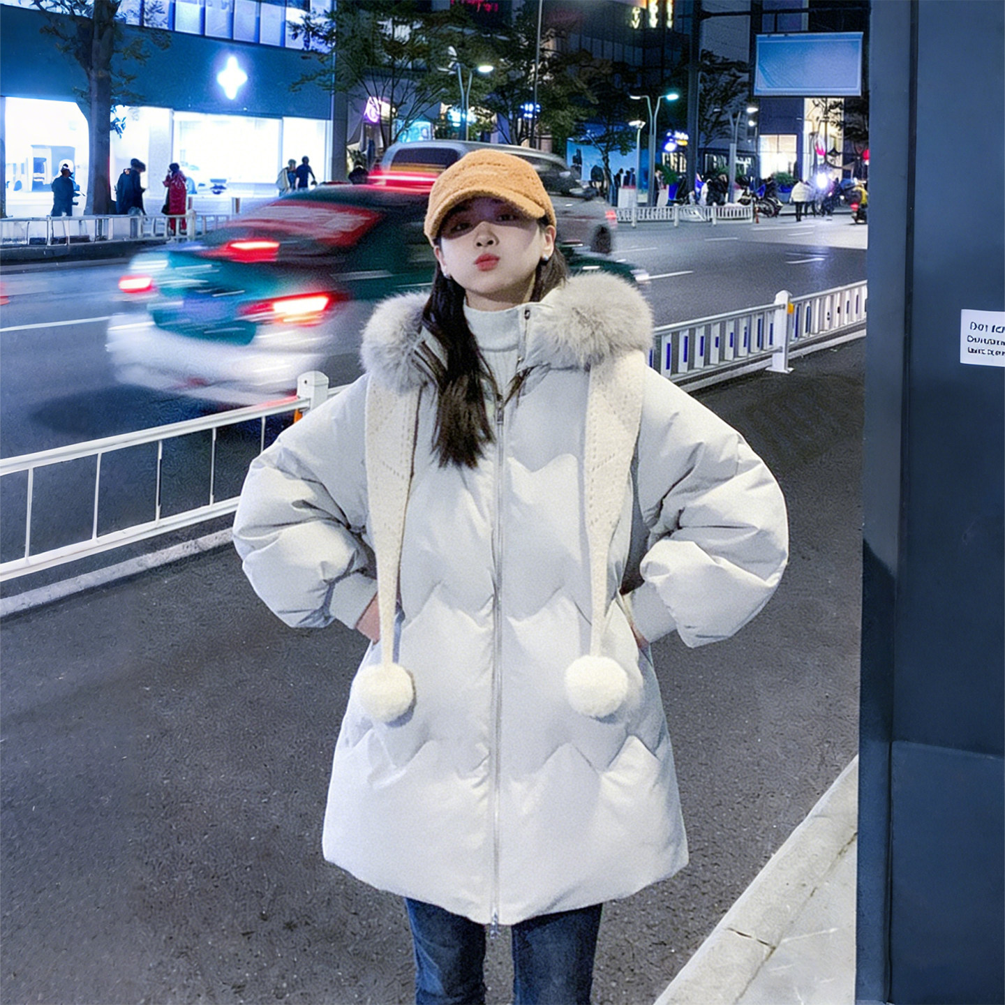 特大码女装胖mm毛领连帽设计感棉服女冬季保暖宽松百搭棉衣外套潮
