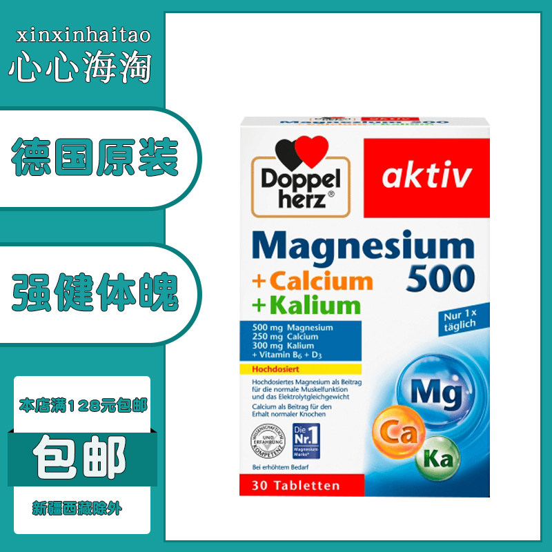 德国双心镁+钙+钾片镁钙钾营养片维生素B6 镁钾钙Magnesium30粒