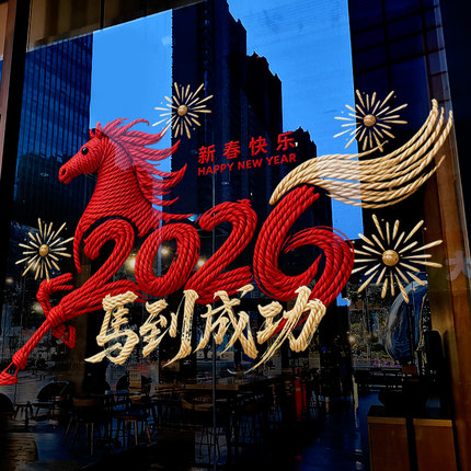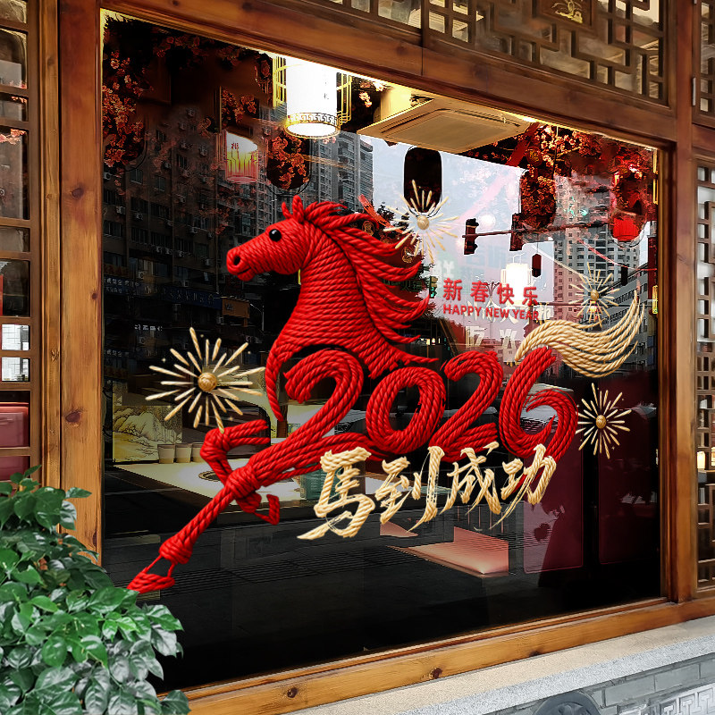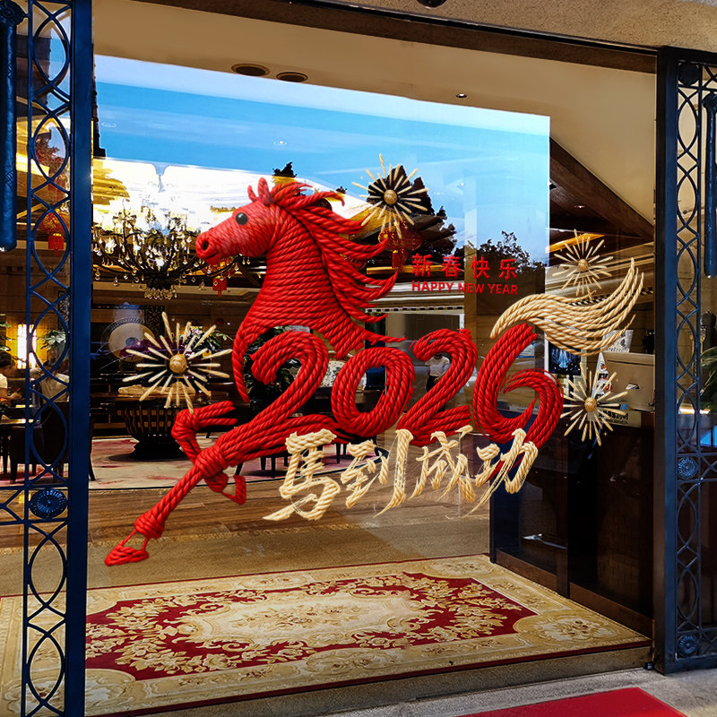 新年装饰窗花春节创意马到成功装扮静电贴马年2026橱窗玻璃门贴纸