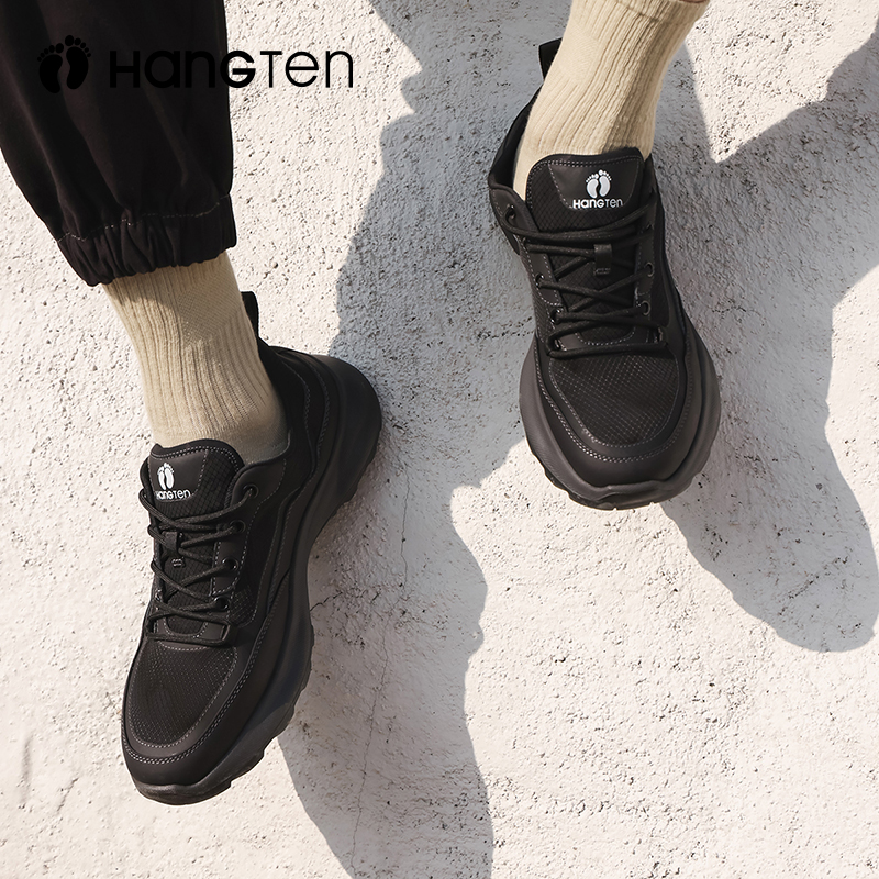 欢腾黑色户外鞋男款2025新款春秋季男鞋软底运动鞋真皮男士休闲鞋