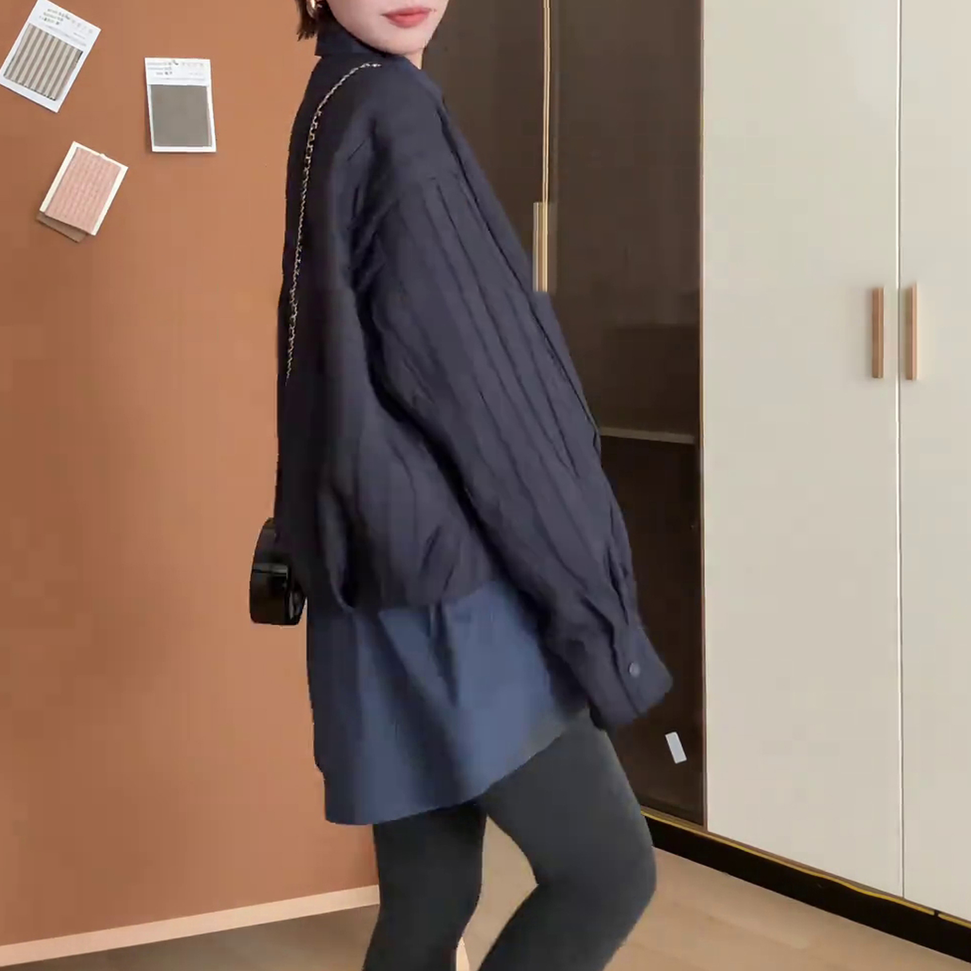 气质宽松显瘦中长款棉服外套2025秋季新款拼接格子假两件休闲棉衣