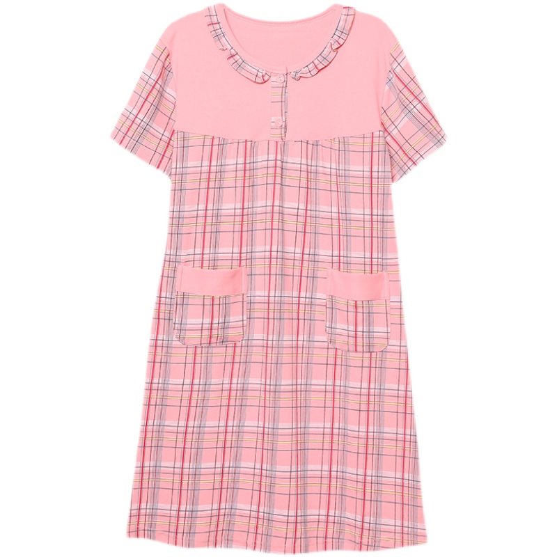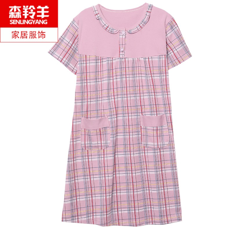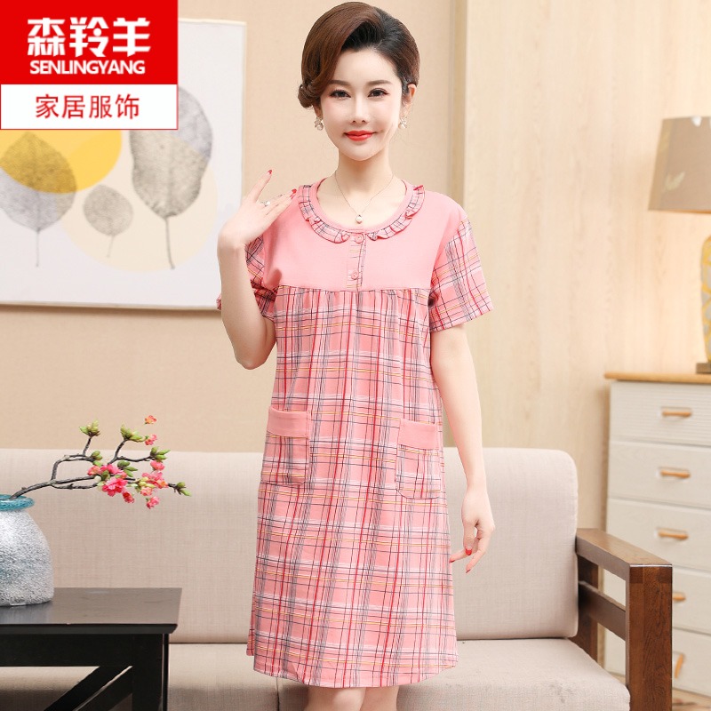 睡裙女夏季短袖纯棉妈妈睡衣中长款裙子加肥加大码中老年女连衣裙