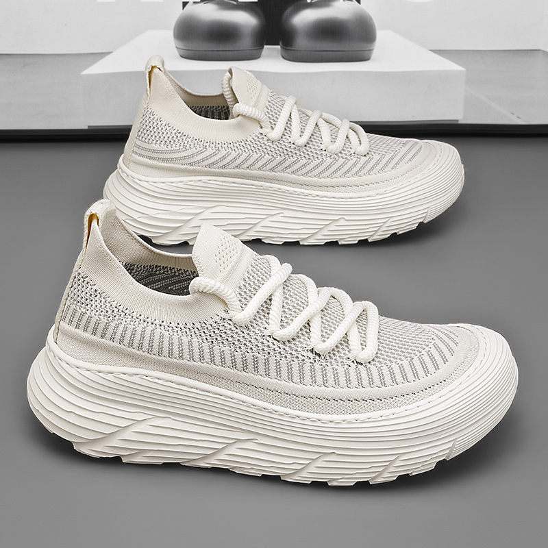 厚底男鞋夏季透气飞织网面运动鞋男士休闲网鞋轻便防滑防臭跑步鞋