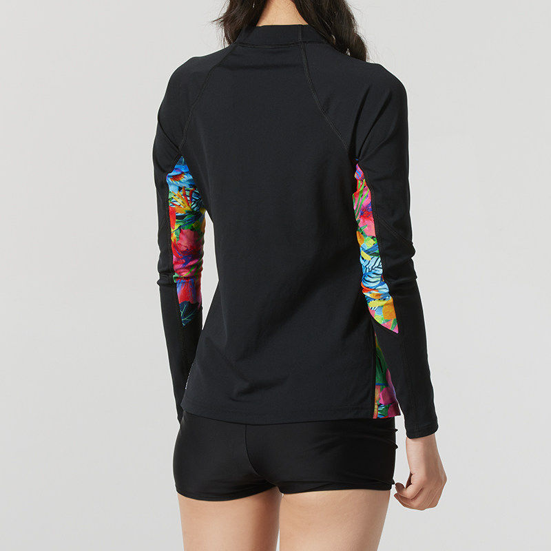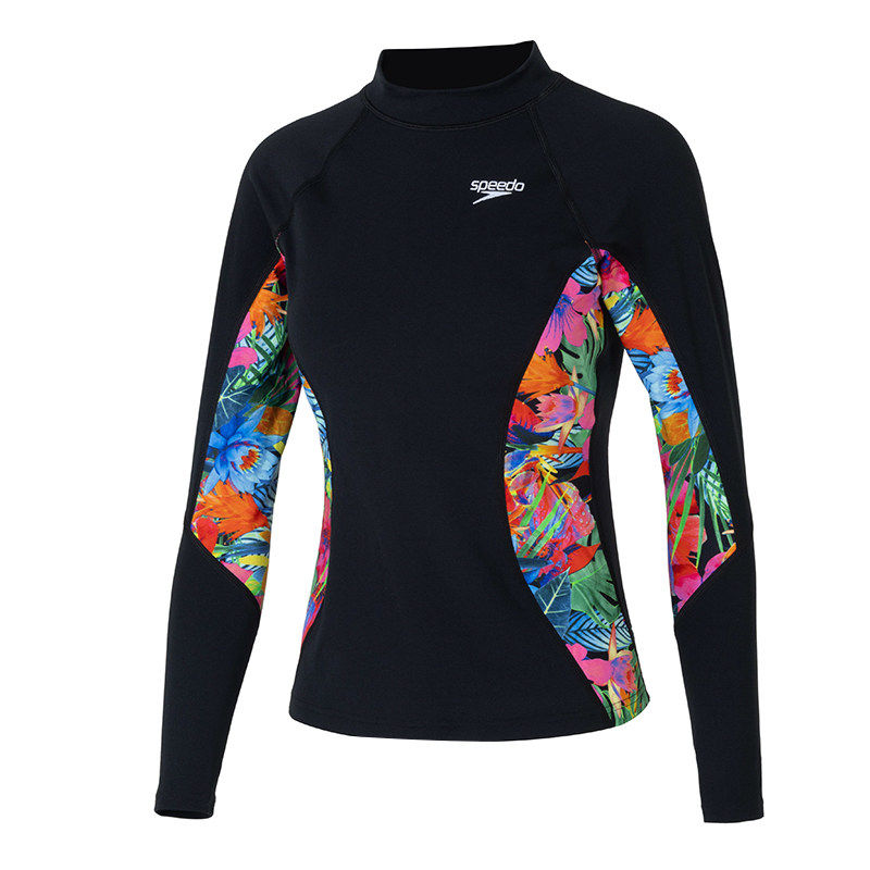Speedo速比涛官方女士分体泳衣新款健身训练Rash印花长袖游泳上衣