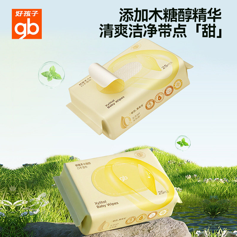 gb好孩子婴儿手口湿巾新生儿木糖醇随身湿纸巾宝宝80片20包便携装